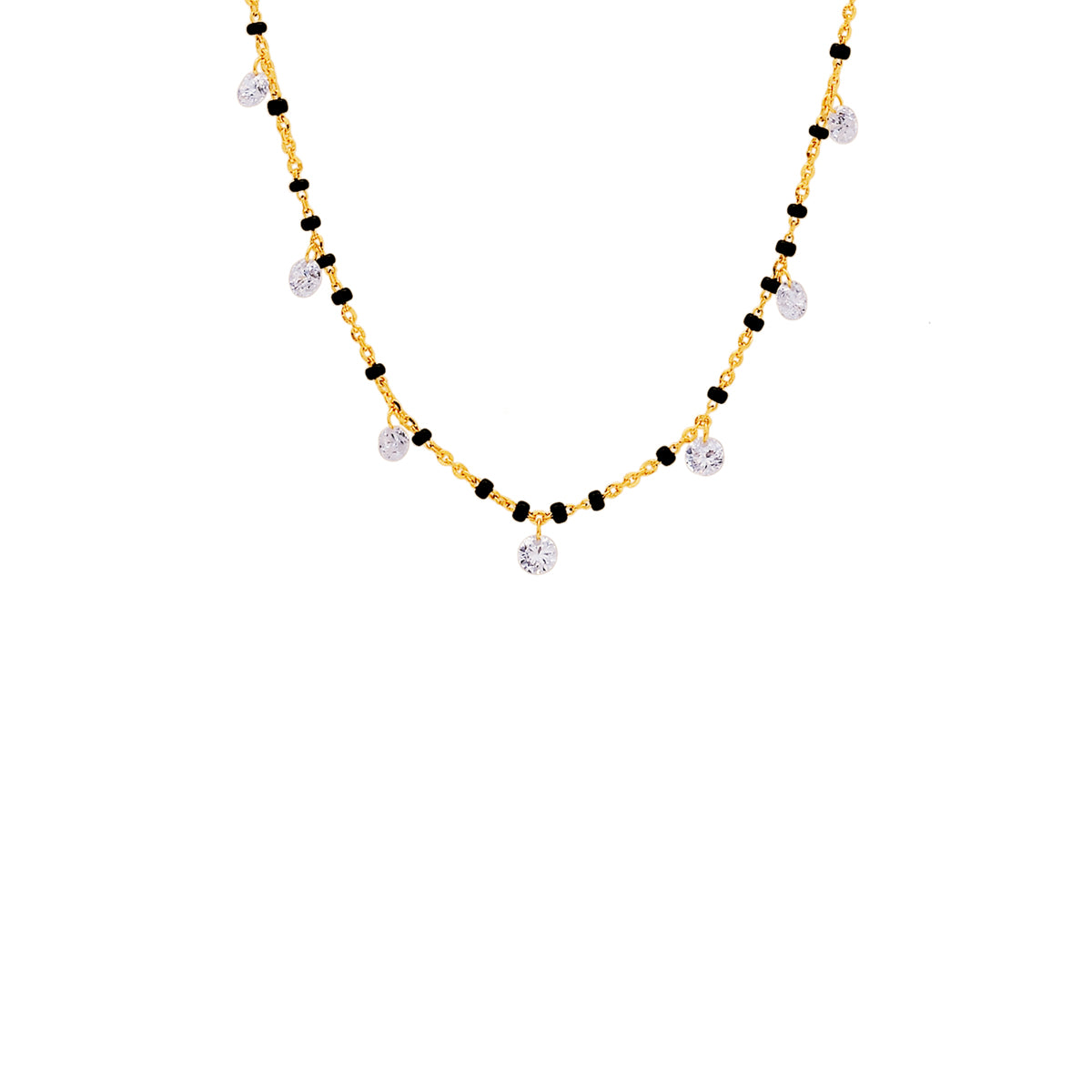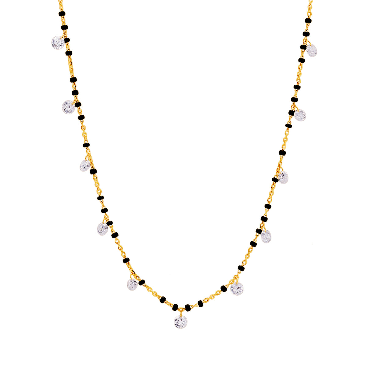 Introducing the exquisite Artistic Mangalsutra with Cubic Zirconia in 22K Gold by Malani Jeweler—a timeless piece designed to capture the essence of tradition and elegance. Crafted specifically for women who appreciate the finer things in life showcasing a classic yellow finish that beautifully complements any ensemble. This stunning piece is fashioned in premium 22KT gold promising both durability and a luxurious appeal. With dimensions featuring a 16-inch length and a delicate width of 0.25 inches it offers a comfortable yet striking fit. The artistic design ensures this is more than just a piece of jewelry—it's an extraordinary addition to your most treasured collection.This elegant mangalsutra underscores Malani Jeweler's commitment to quality and design. Its craftsmanship assures you of its premium quality. Elevate your jewelry collection with the Artistic Mangalsutra by Malani Jeweler.