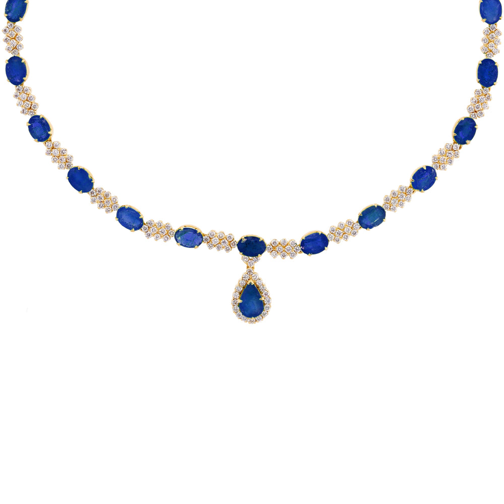 4.43Ct VS/GH Diamond Necklace Set With Sapphire in 18K Gold
