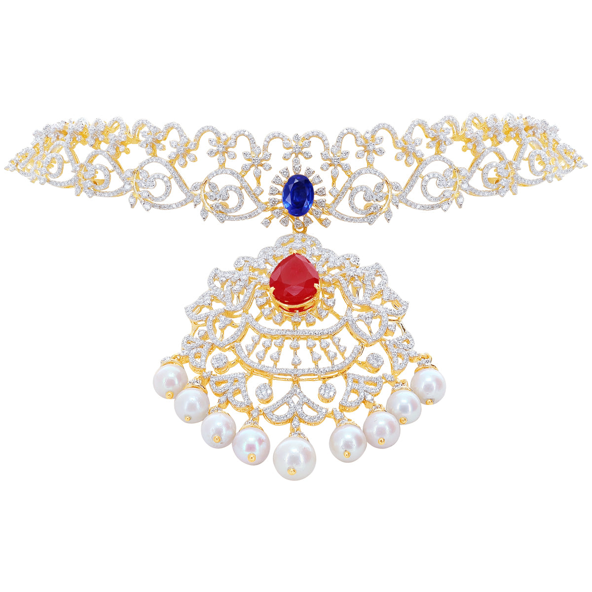 13.85Ct VVS/EF Diamond Choker With Changable Gemstones in 18K Gold