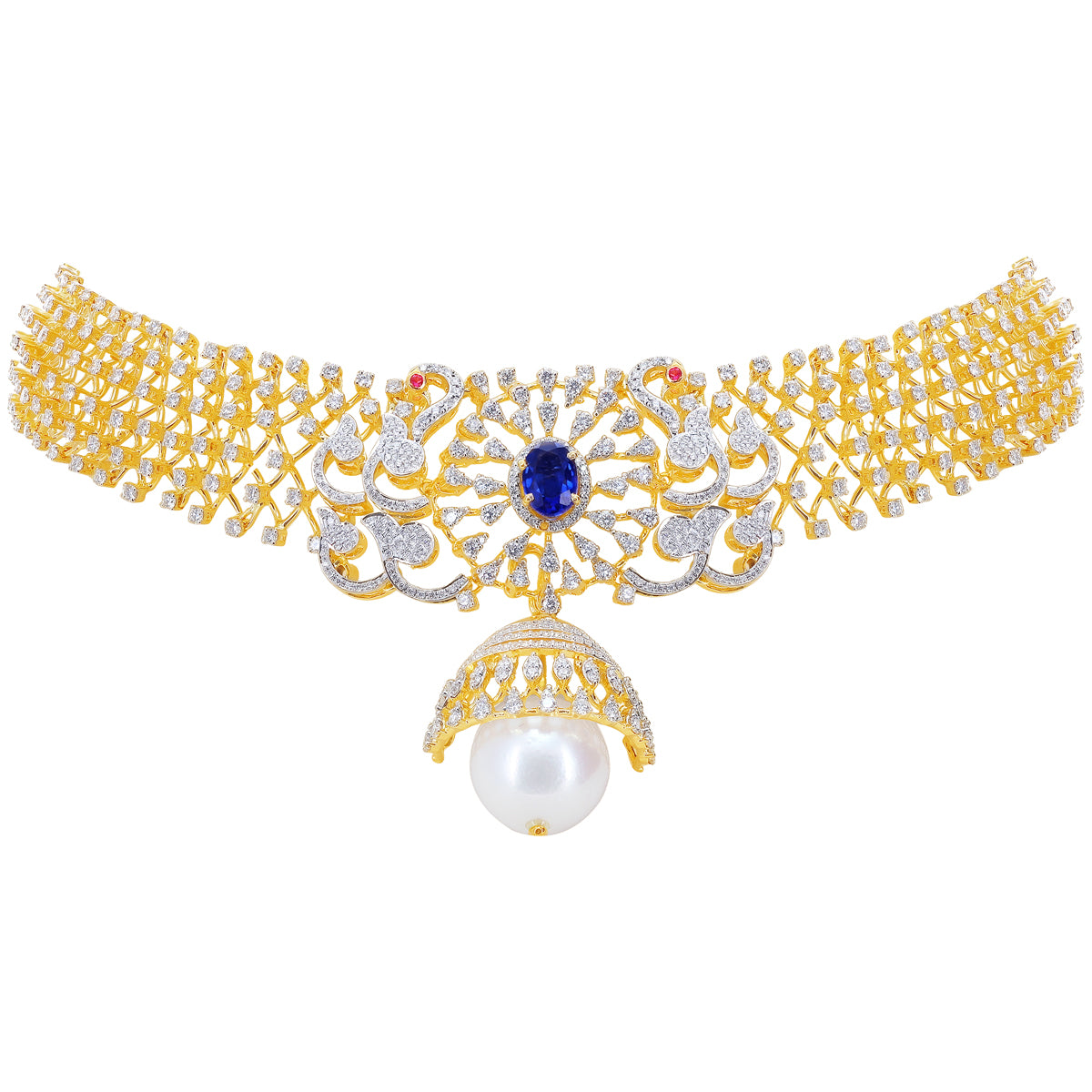 13.86Ct VVS/EF Diamond Choker With Changable Gemstones in 18K Gold