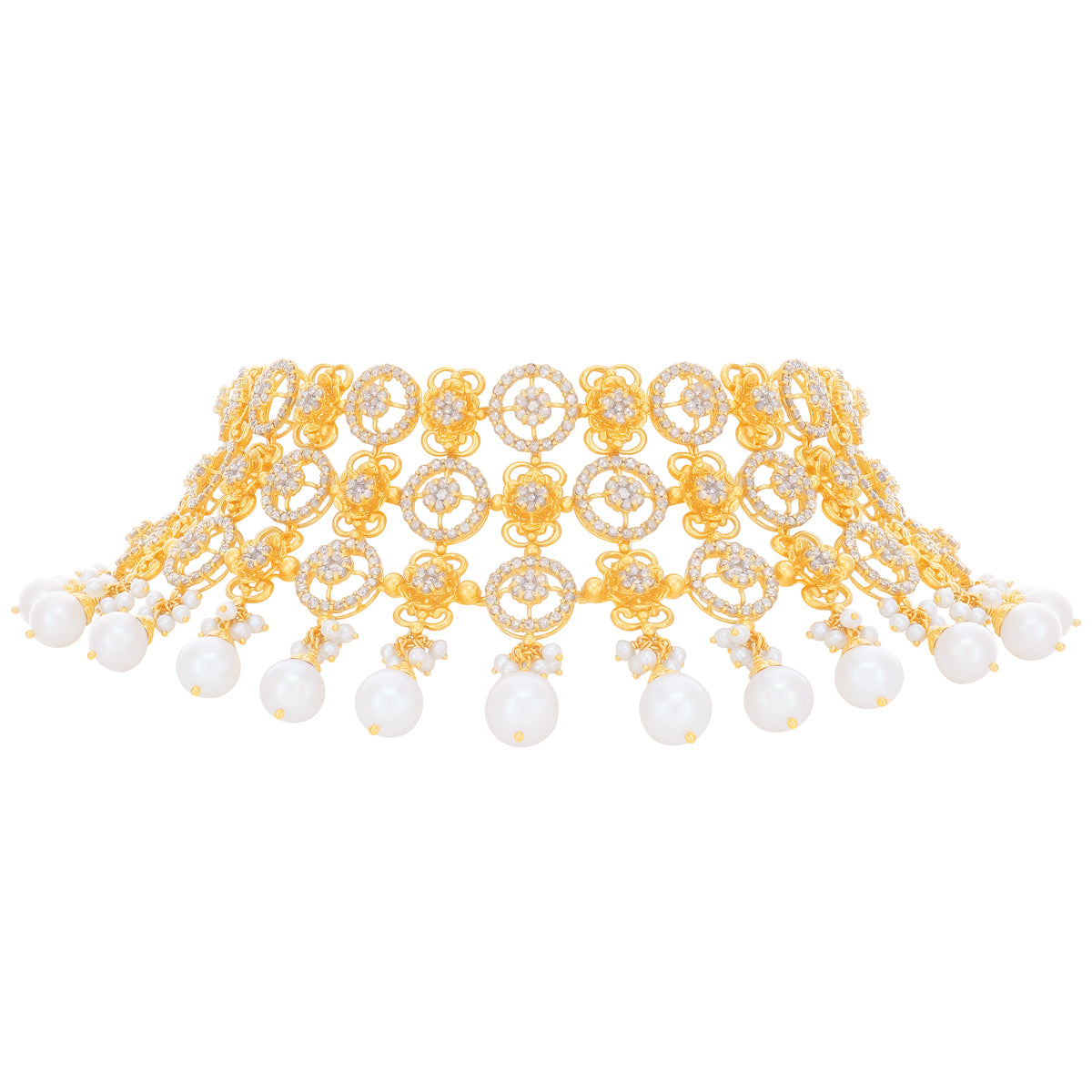 23.67CTW Rose Cut Diamond Choker Set With Pearl in 22K Gold
