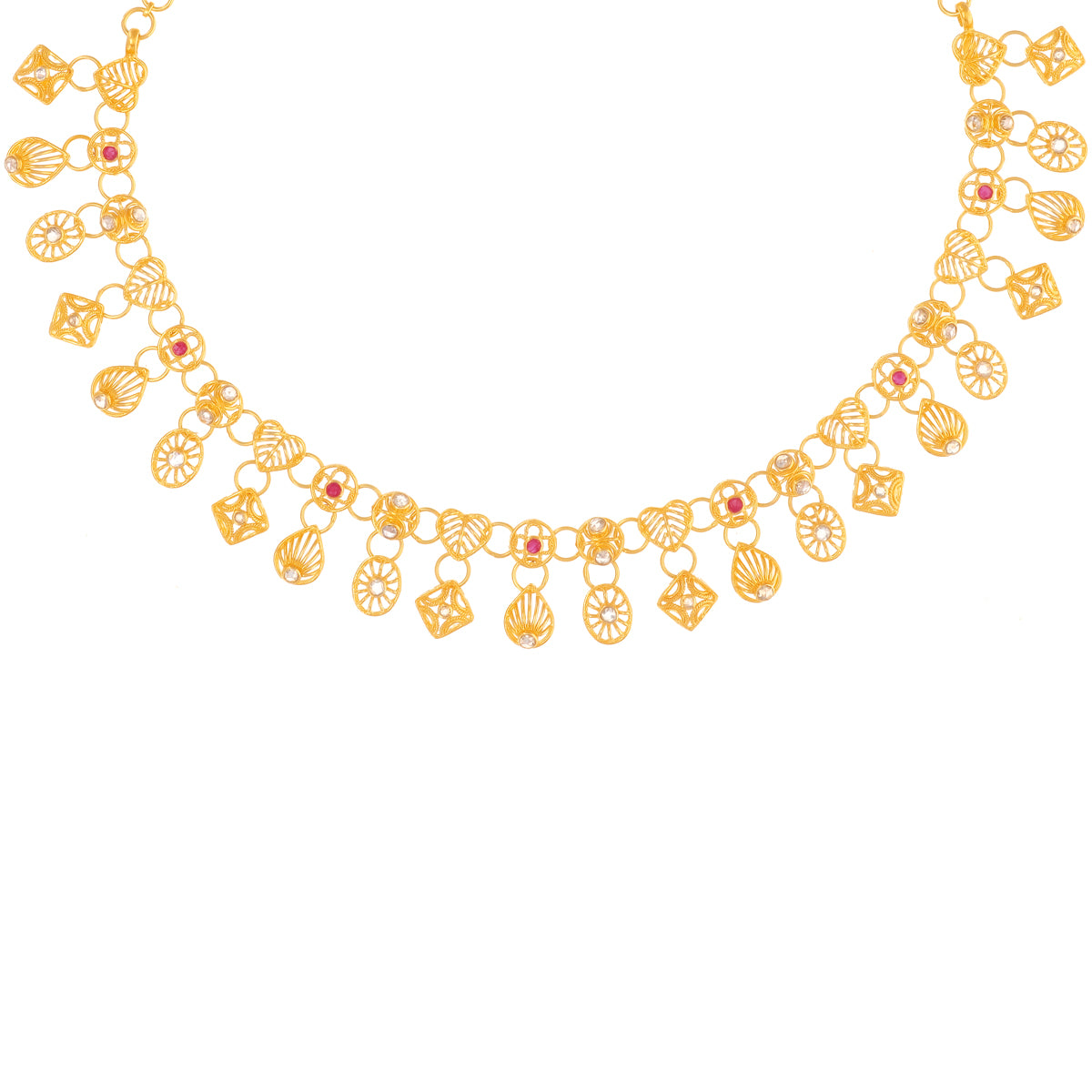 2.60CTW Rose Cut Diamond Necklace Set With Ruby in 22K Gold