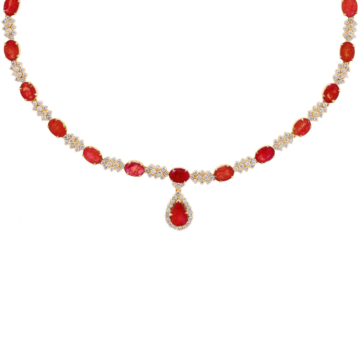 3.96Ct VS/GH Diamond Necklace Set With Ruby in 18K Gold