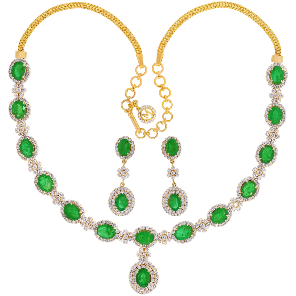 6.99Ct VS/GH Diamond Necklace Set With Emerald in 18K Gold