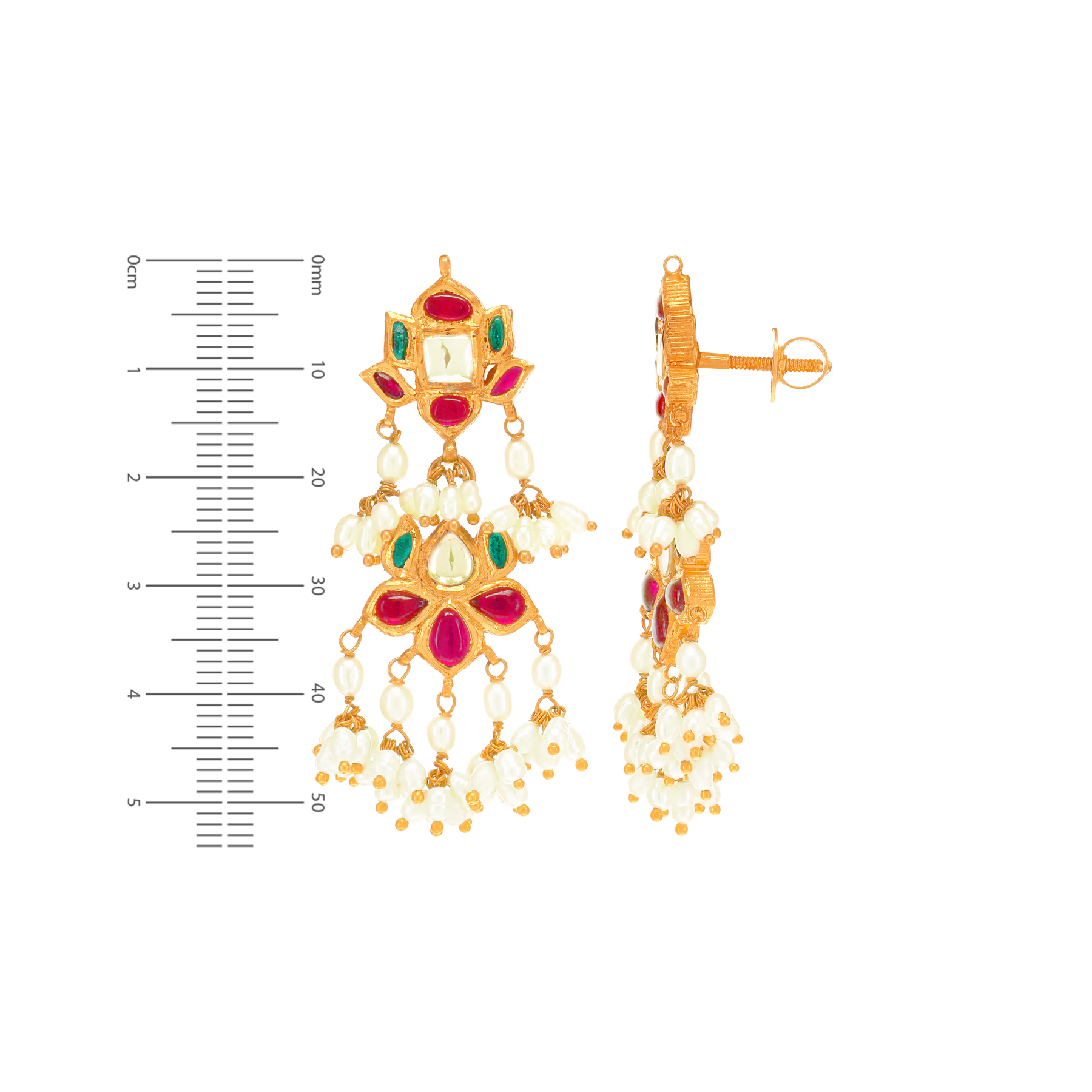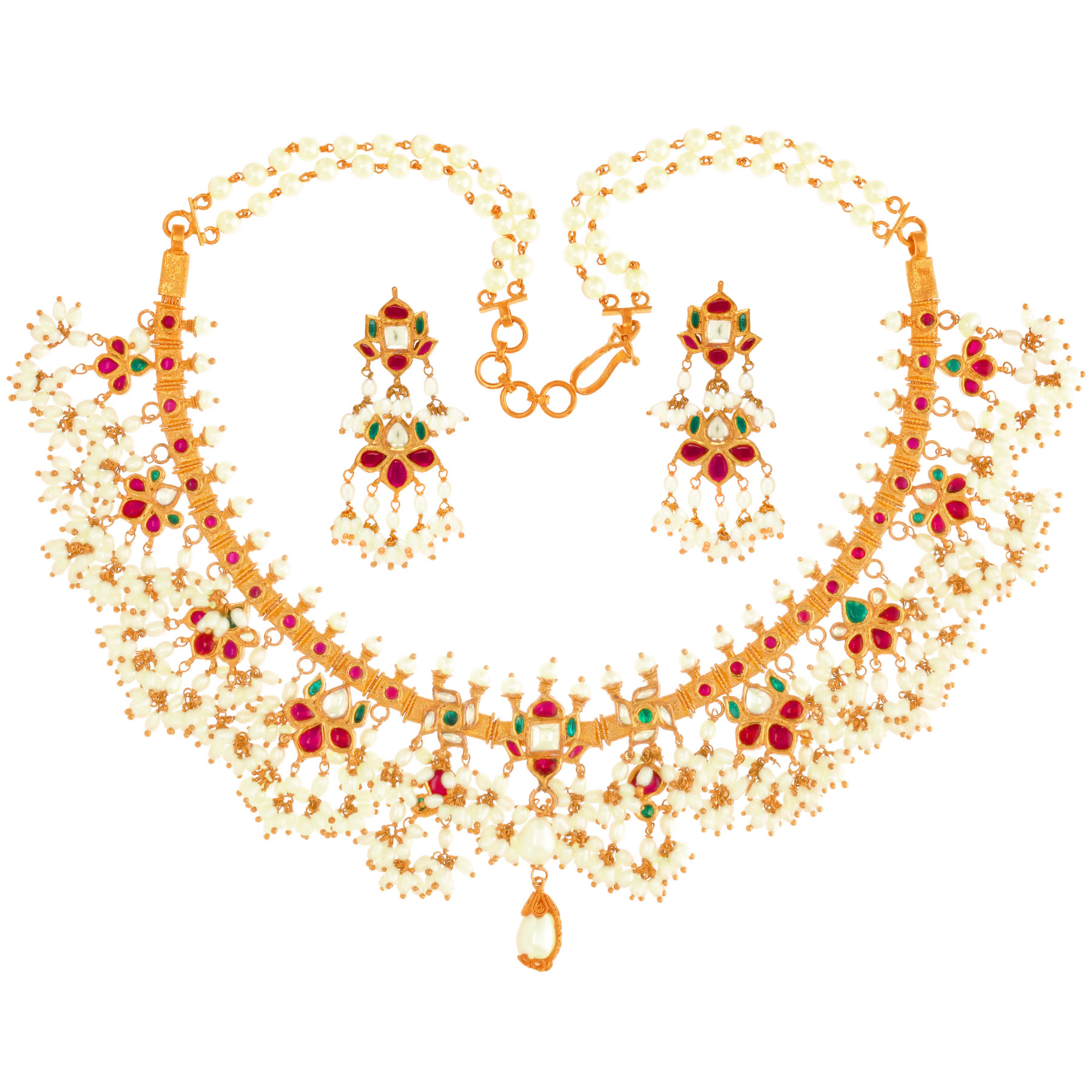Delightful Antique Gutta Pusalu Necklace Set With Kundan & Pearl in 22K Gold