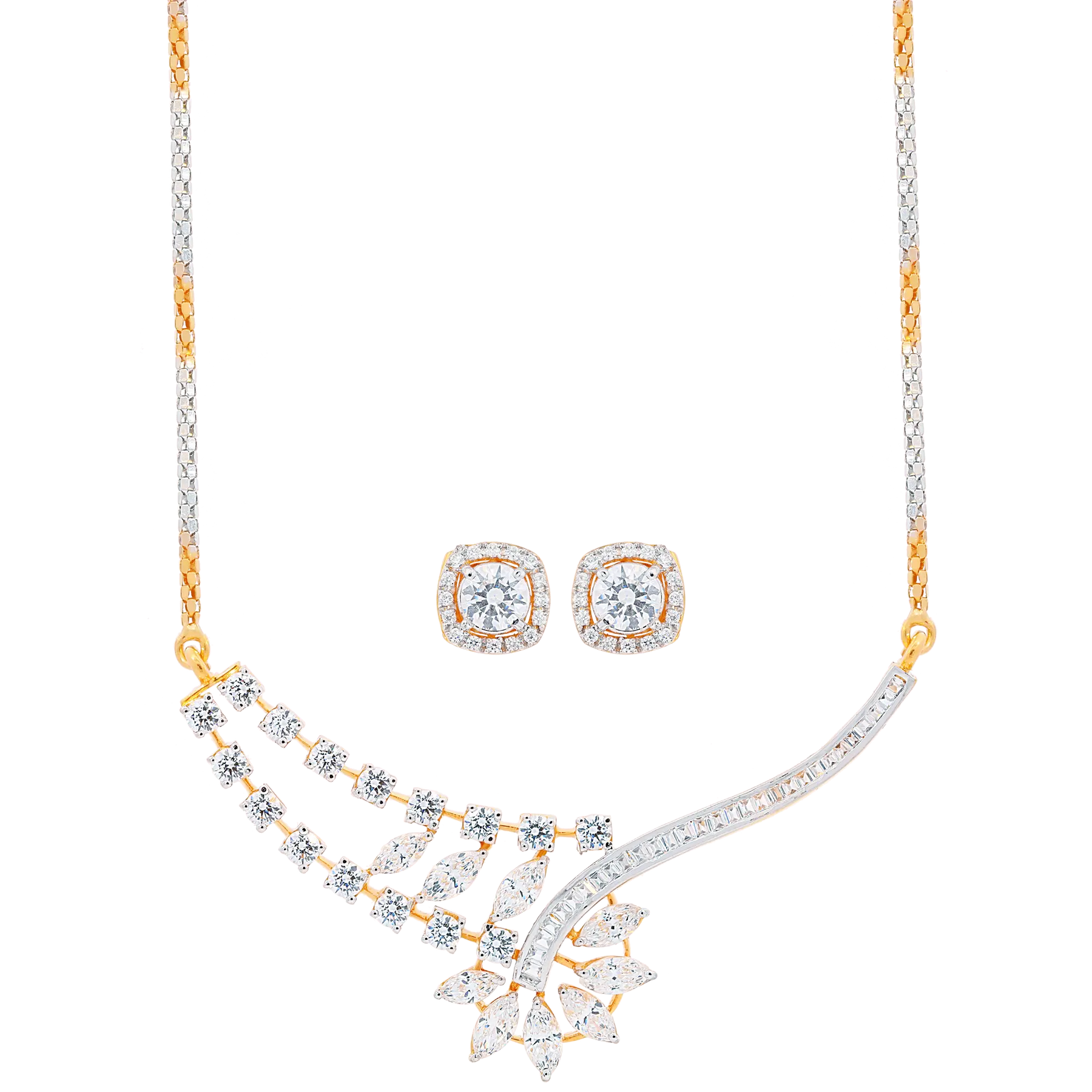 Enchanting Two tone Necklace Set With Gemstones in 18K Gold