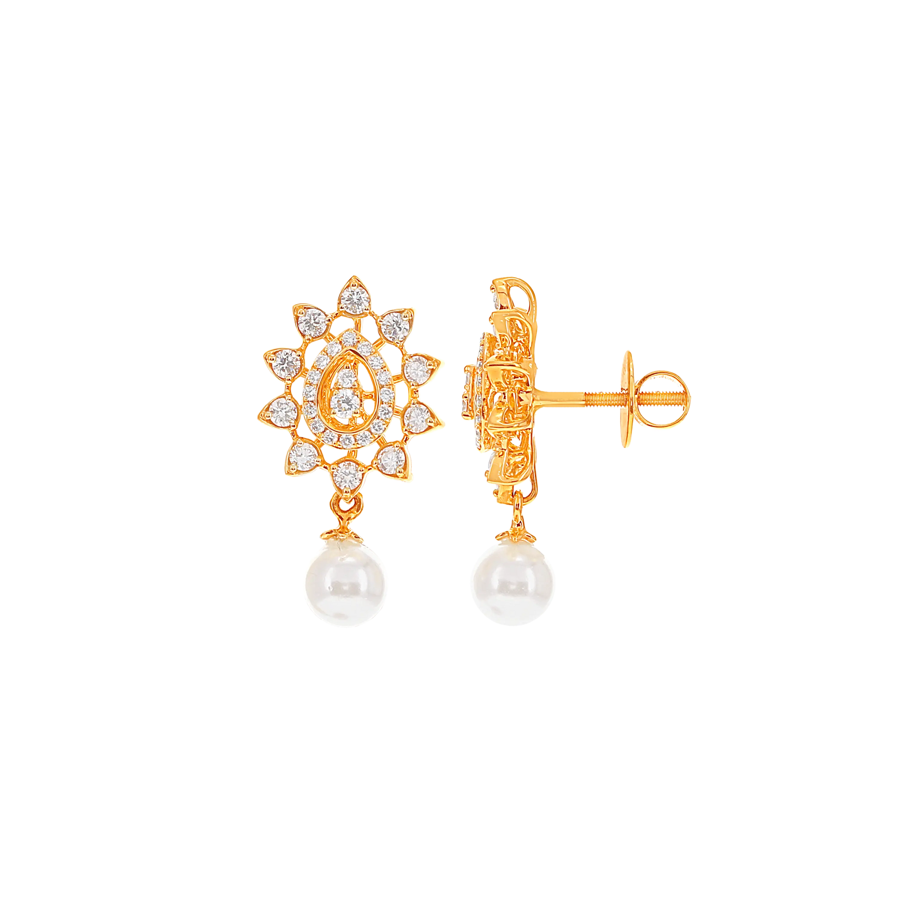5.89Ct VVS/FG Diamond Necklace Set With Pearl in 18K Gold
