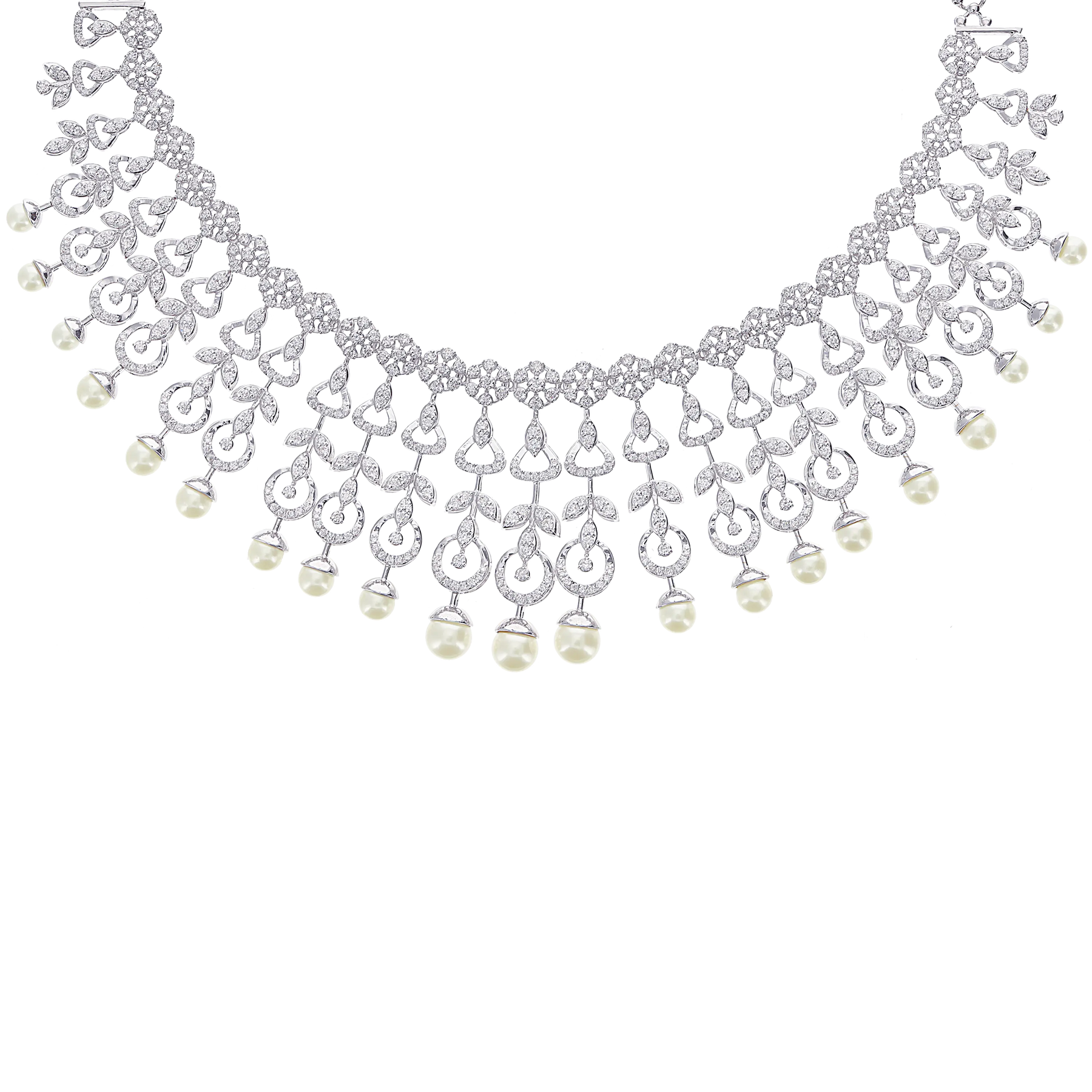 8.76Ct VVS/FG Diamond Necklace Set With Pearl in 18K White Gold