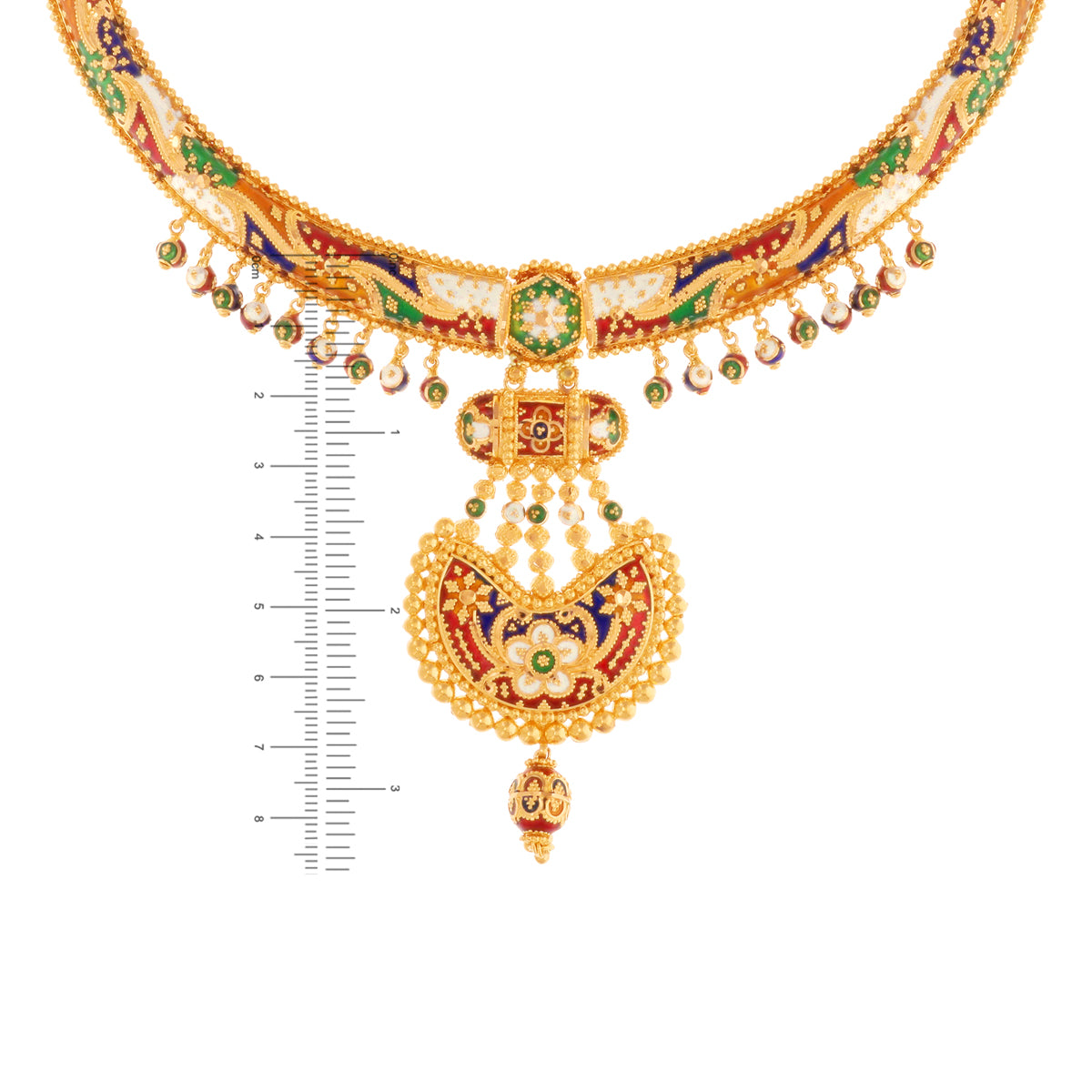Hand-crafted Minakari Hansli Necklace Set in 22K Gold