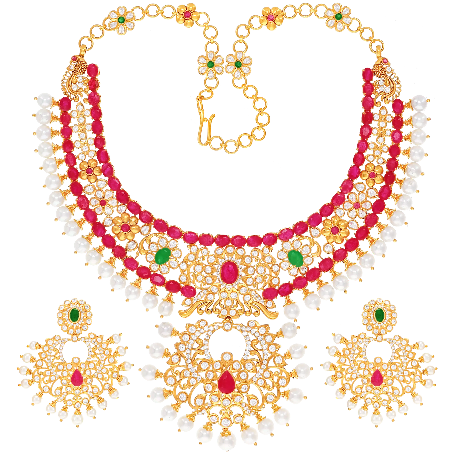 Magnificent Antique Necklace Set With Ruby Emerald & Gemstones in 22K Gold