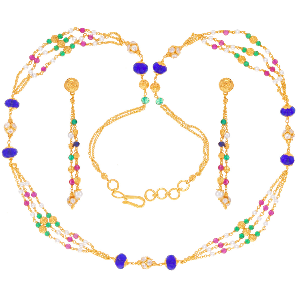 Ravishing Necklace Set With Gemstones in 22K Gold