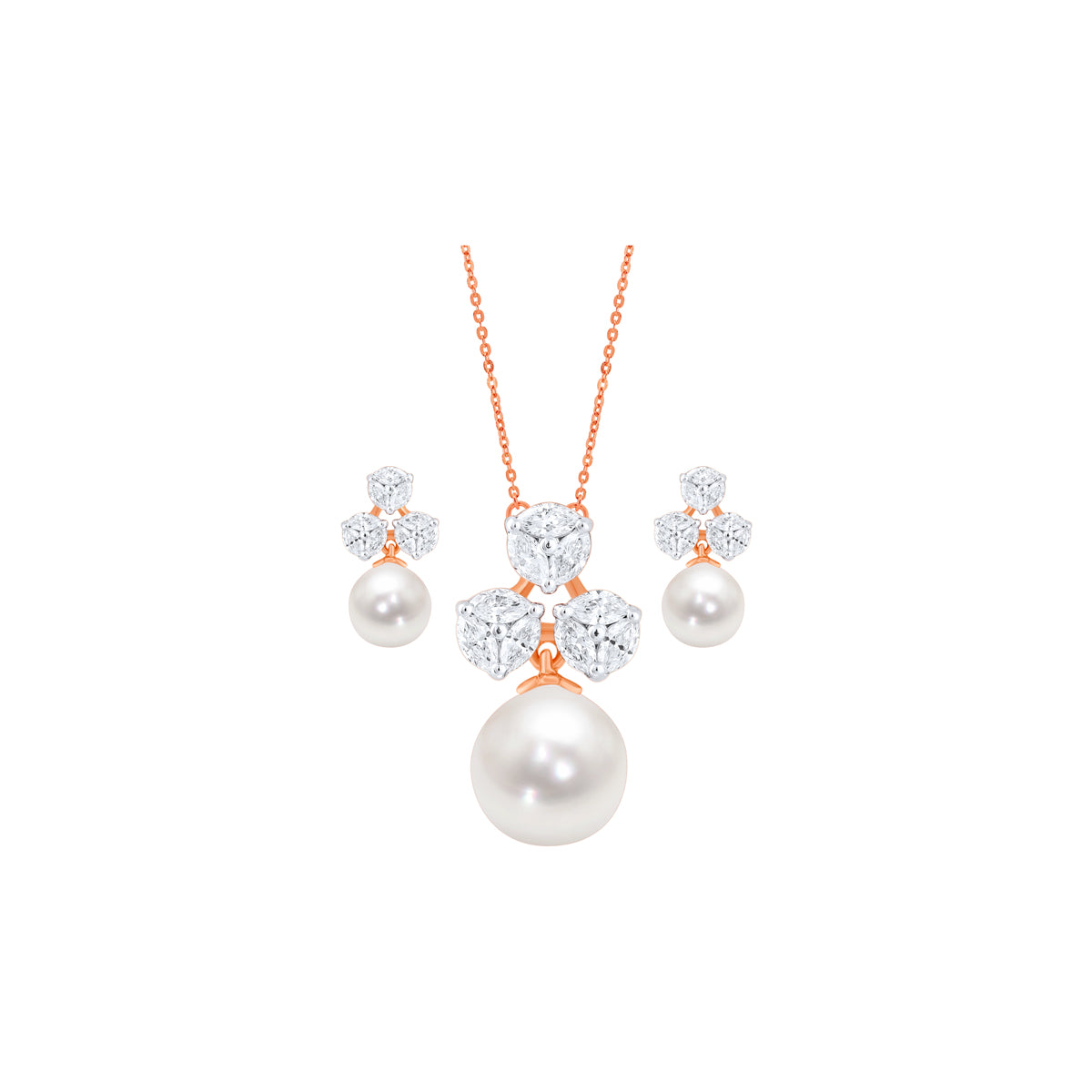 0.85Ct VVS/FG Diamond Pendant Set With Pearl in 18K Rose Gold