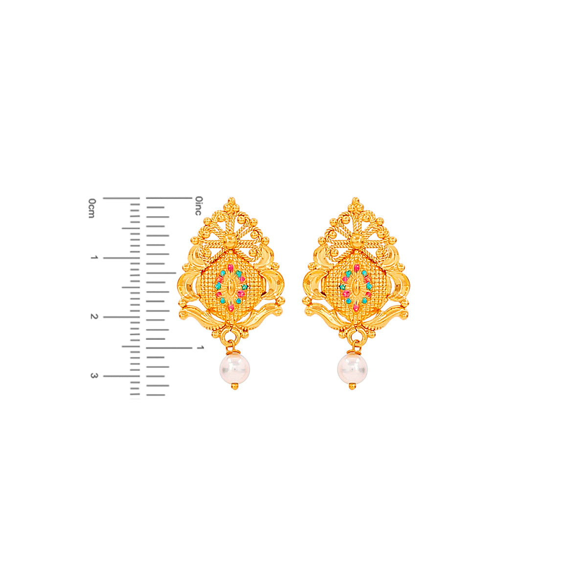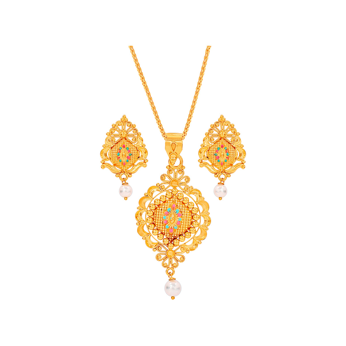 Artistic Minakari Pendant Set With Pearl in 22K Gold