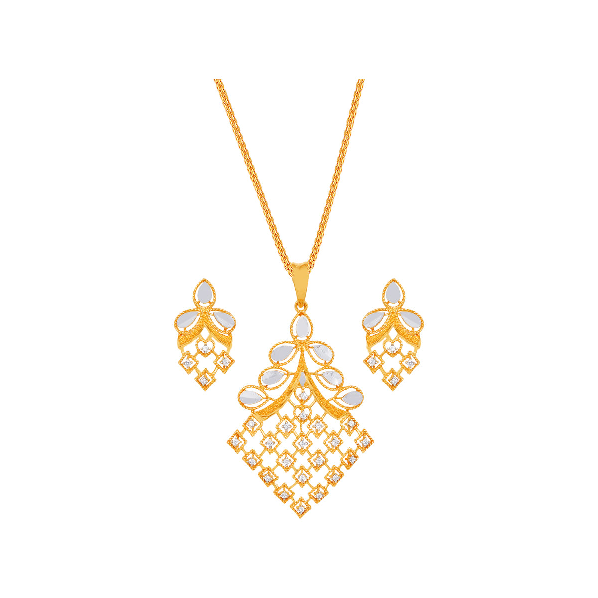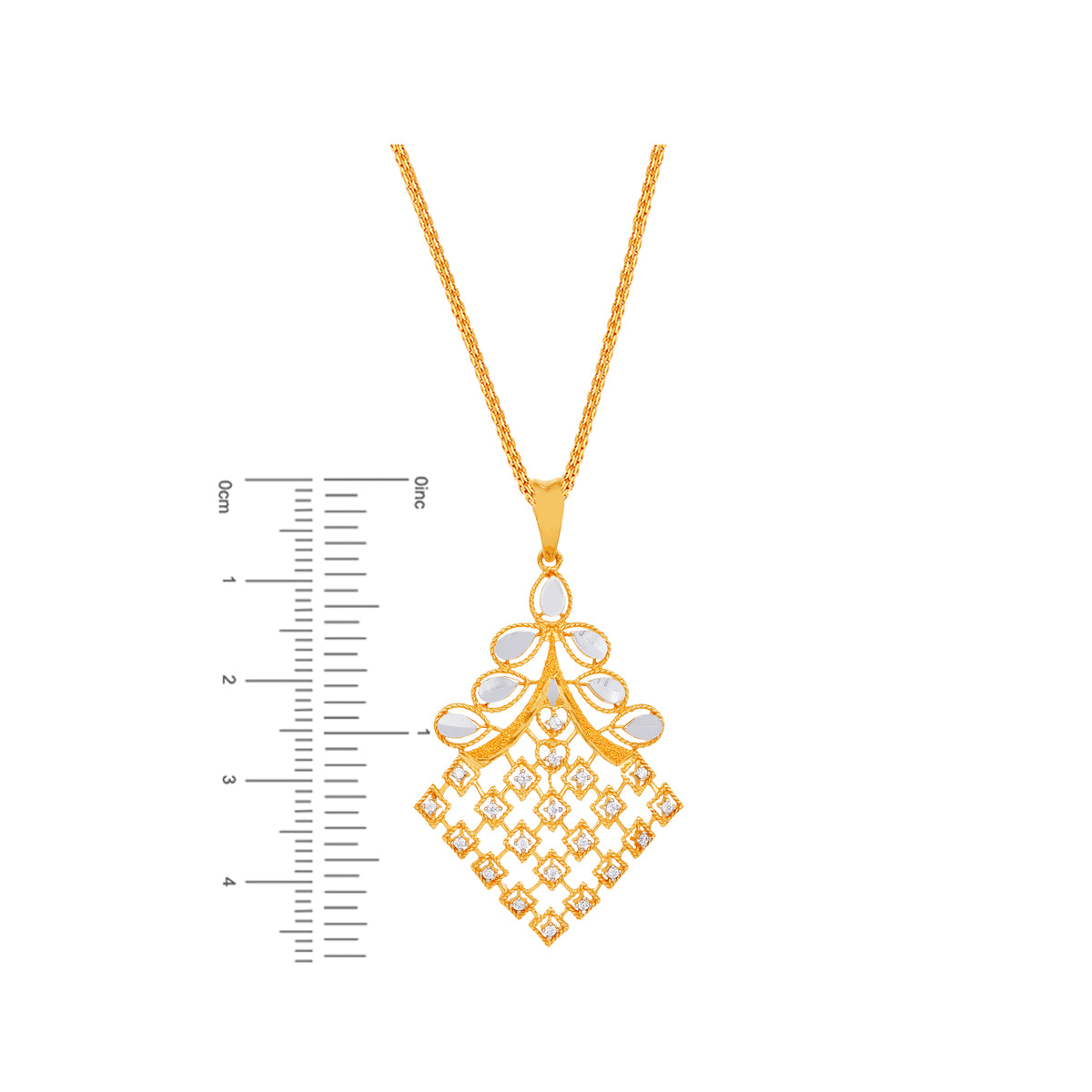 Artistic Two tone Pendant Set With CZ in 22K Gold
