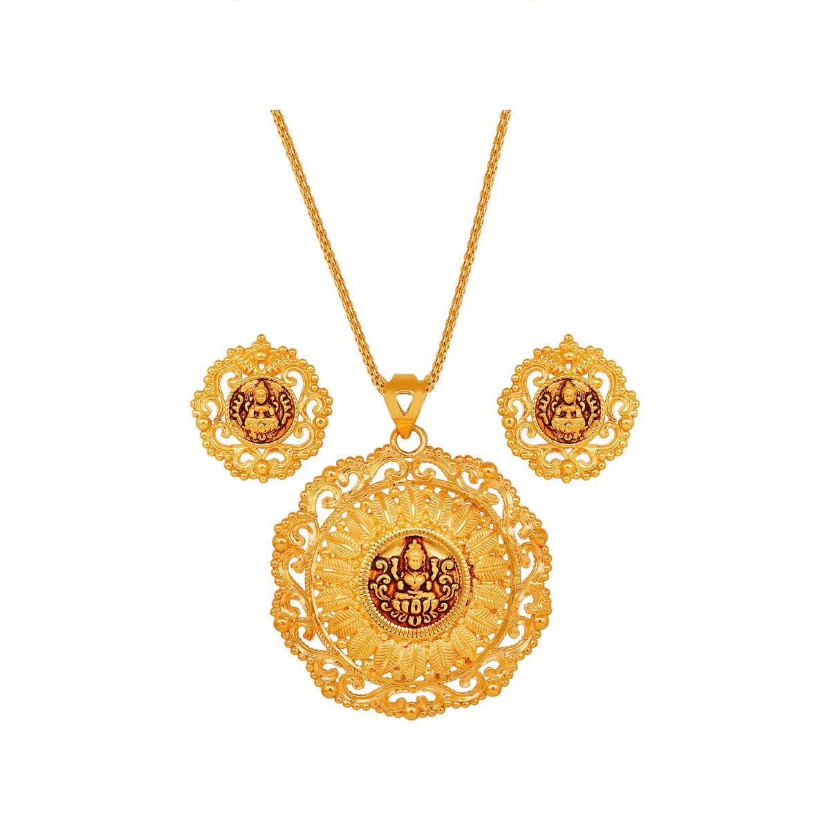 Brilliant Laxmi Coin Pendant Set in 22K Gold