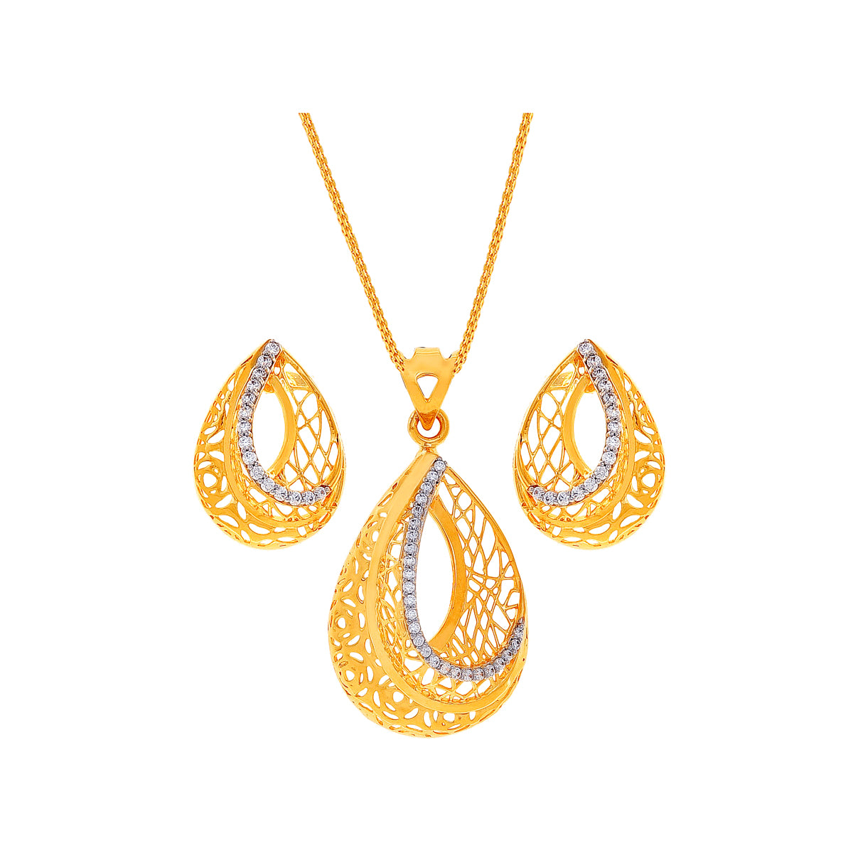 Brilliant Pendant Set With CZ in 22K Gold
