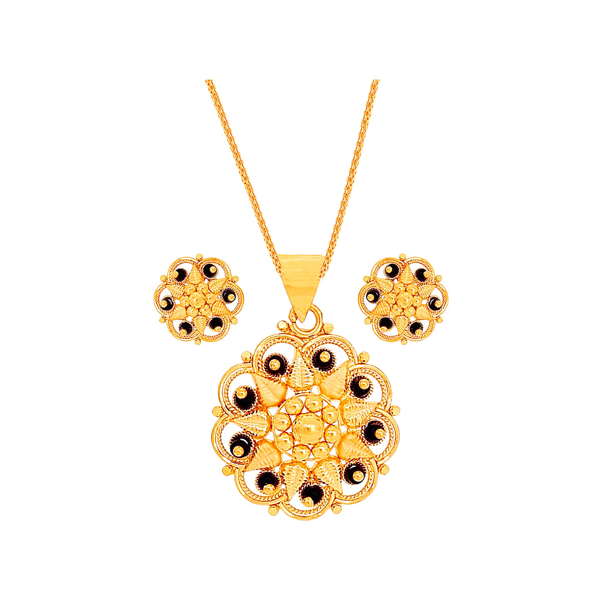 Enchanting Pendant Set With Black Beads in 22K Gold