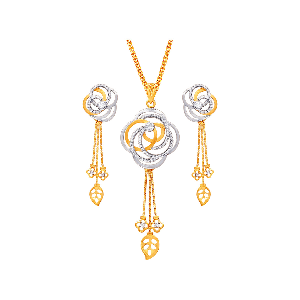 Intriguing Two tone Pendant Set With CZ in 22K Gold