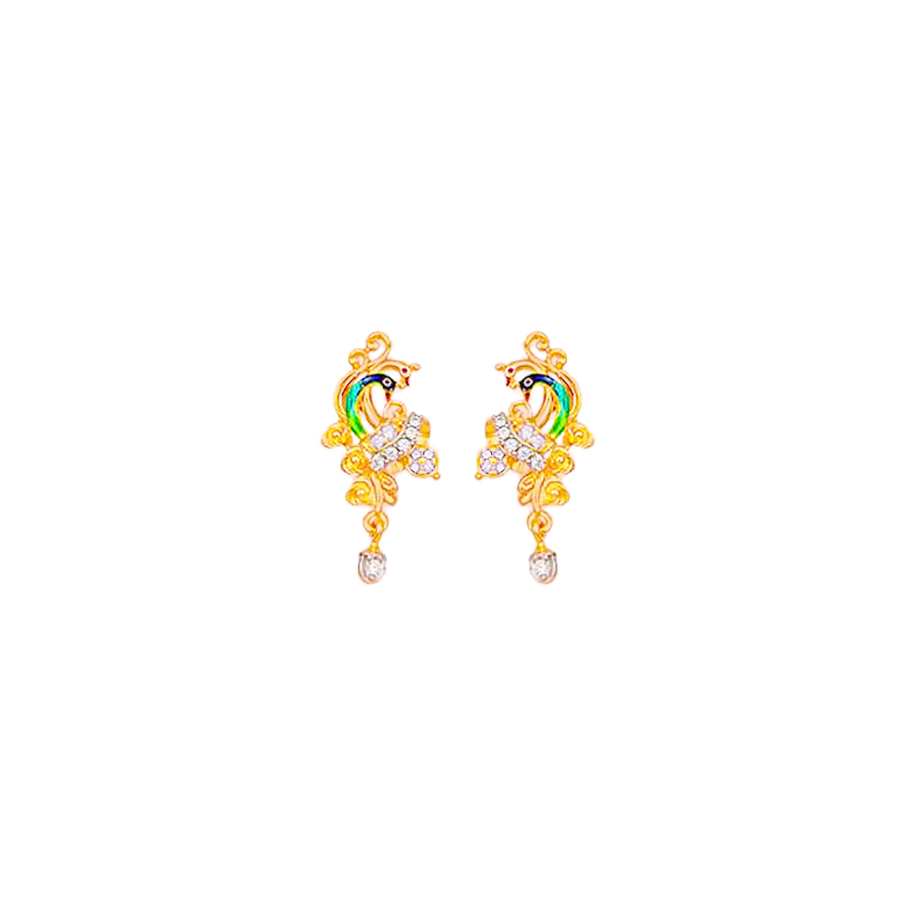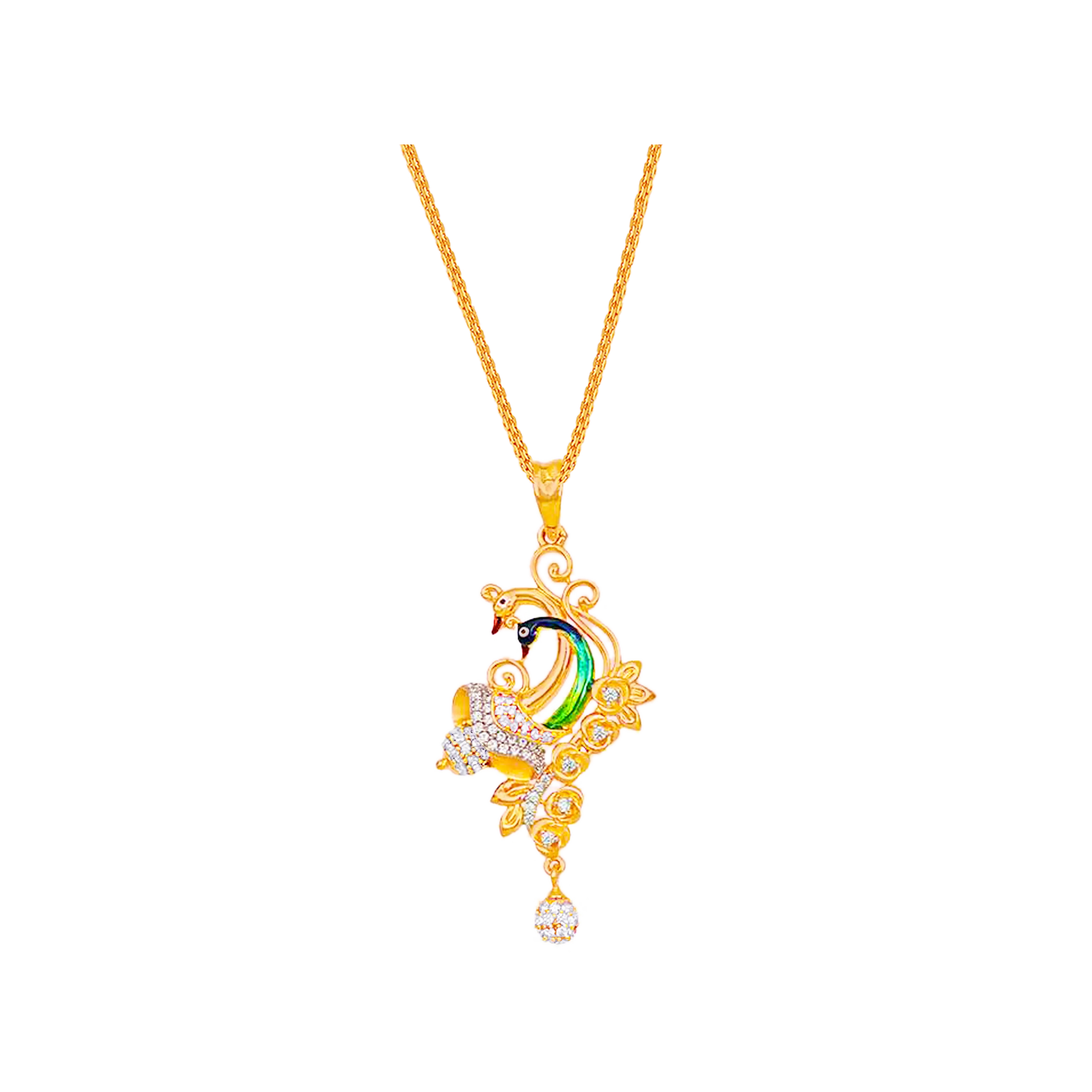 Lovely Minakari Peacock Pendant Set Wiith Gemstones in 22K Gold