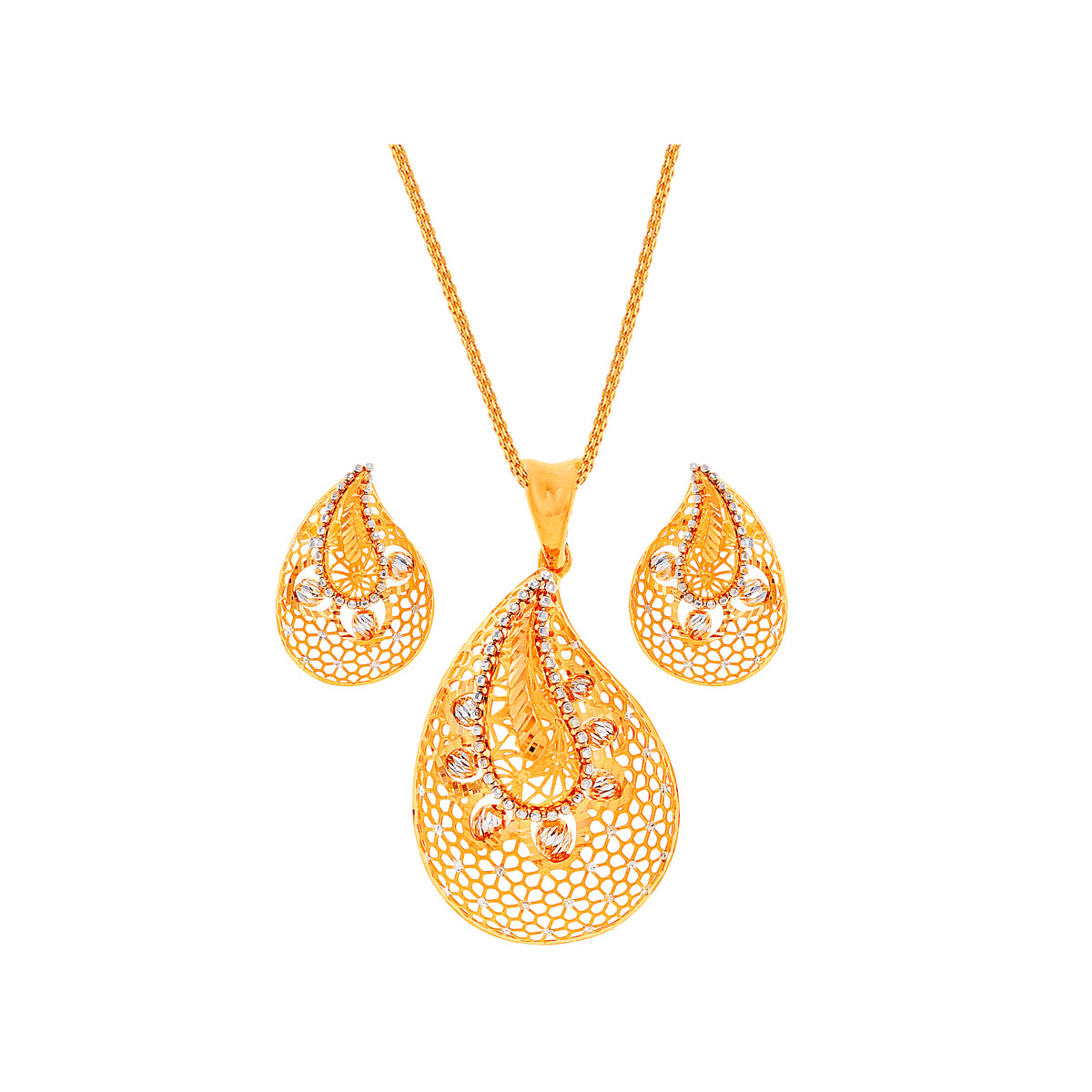Opulent Two tone Pendant Set in 22K Gold
