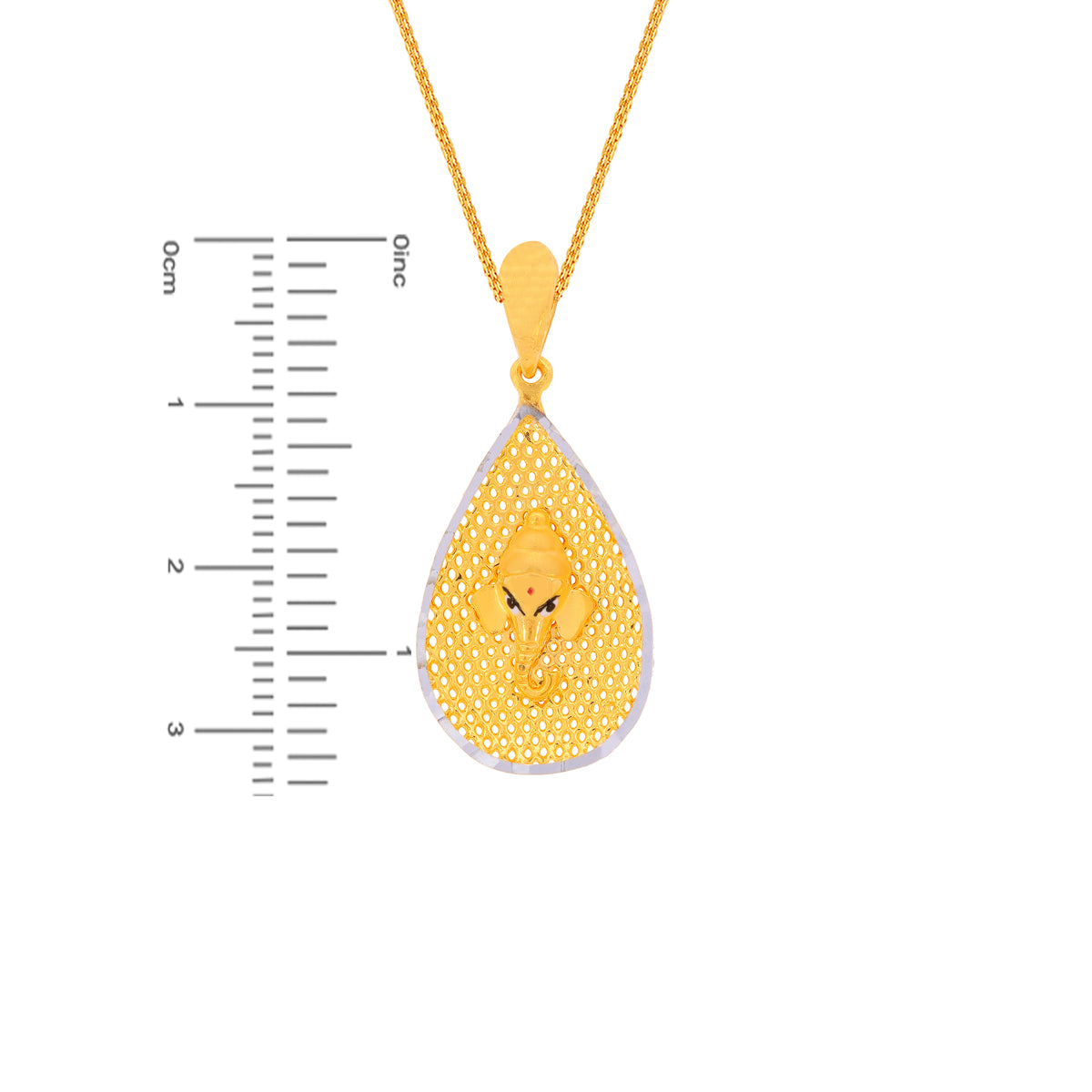 Introducing the exquisite Ganesh Two Tone Pendant by Malani Jeweler an elegant piece crafted in 22K gold. This unisex pendant embodies a perfect blend of spiritual significance and contemporary design making it an ideal accessory for both men and women. With a stunning two-tone finish this pendant captures the divine essence of Lord Ganesh a symbol of wisdom and prosperity. Measuring 1.21 inches in length and 0.54 inches in width this pendant is designed to make a statement. Its light weight design ensures comfortable wear throughout the day. The pendant is crafted with high-quality yellow gold offering a luxurious sheen that complements its intricate details. Please note the chain is not included allowing you the freedom to pair it with a chain of your choice. Perfect for adding an auspicious touch to any occasion this pendant by Malani Jeweler is a timeless piece that enhances any jewelry collection