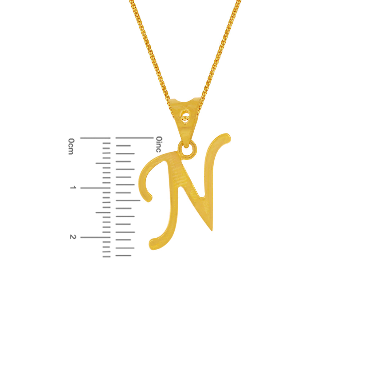 Discover the timeless elegance of the Initial "N" Pendant in 22K Gold by Malani Jeweler. Crafted for both women and men this exquisite unisex piece shines in luxurious yellow gold offering a sophisticated finish that complements any style. Measuring 0.98 inches in length and 0.54 inches in width this pendant boasts a perfect balance of refinement and presence. It seamlessly combines durability with delicate design. Perfect for adding a personal touch to your jewelry collection this initial pendant embodies a unique charm that's ideal for everyday wear or special occasions. Please note that the chain is not included allowing you to customize it with your preferred chain style. Ideal for SEO our 22K gold pendant offers both style and significance making it a cherished gift or personal keepsake. Embrace the allure of personalized luxury with this stunning initial "N" pendant by Malani Jeweler.