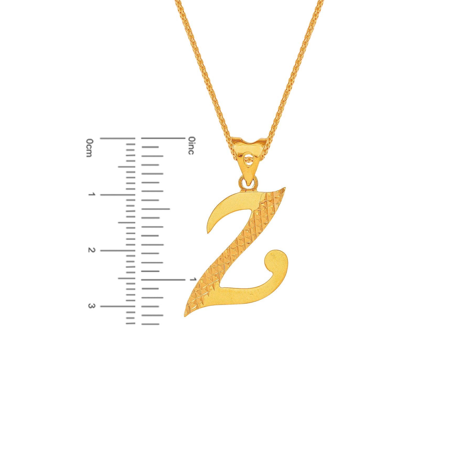 Discover the exquisite craftsmanship of the Initial "Z" Pendant in 22K Gold exclusively by Malani Jeweler. This elegant pendant is a perfect blend of sophistication and style making it an ideal addition to any jewelry collection. Crafted from high-quality 22KT gold it boasts a radiant yellow finish that beautifully complements its sleek design. The pendant features a generous length of 1.15 inches and a width of 0.54 inches offering a striking yet delicate appearance. This unisex pendant is lightweight enough for everyday wear while still making a statement. Designed to captivate this luxurious gold pendant is perfect for anyone looking to express their unique personality or for those who appreciate fine jewelry. While the chain is not included the Initial "Z" Pendant serves as a versatile piece that pairs beautifully with a variety of chains. Shop the Malani Jeweler collection today to elevate your style with this distinctive timeless piece.