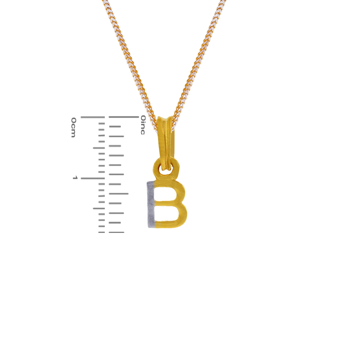 Introducing the exquisite Initial "B" Two-tone Pendant by Malani Jeweler crafted with precision and elegance for kids in 22K gold. This charming gold pendant is specifically designed for little ones combining a classic initial style with a modern twist. Featuring a luxurious two-tone finish it sparkles with a captivating hue that elevates any outfit. With a delicate pendant length of 0.63 inches and a width of 0.22 inches this piece is ideal for a child's collection. Despite its dainty dimensions it possesses a substantial feel. Please note that the chain is not included. Designed for those with a keen eye for style and quality this pendant embodies Malani Jeweler's commitment to fine craftsmanship and superior design. Perfect for adding a personal touch to any attire the Initial "B" Pendant is a memorable gift for special occasions. Explore timeless elegance with Malani Jeweler your trusted choice for kids' gold jewelry.