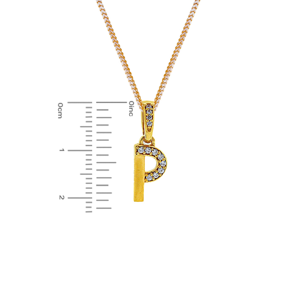 Introducing the Initial "P" Pendant by Malani Jeweler crafted in 22K yellow gold perfect for kids. This elegant pendant showcases a sparkling cubic zirconia accent combining charm with a touch of sophistication. Designed with a pendant length of 0.75 inches and width of 0.25 inches it's both delicate and striking making it an ideal addition to any child's jewelry collection. Its lightweight design with a gross weight of 1.3 grams ensures comfort and ease of wear. Explore this exquisite gold pendant in the kids category and let your child express their unique style with Malani Jeweler's timeless craftsmanship.
