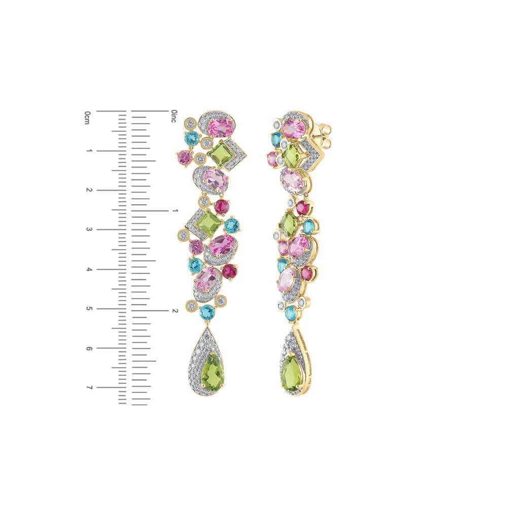 2.09Ct VS/HI Diamond Long Earrings With Gemstones in 18K Gold