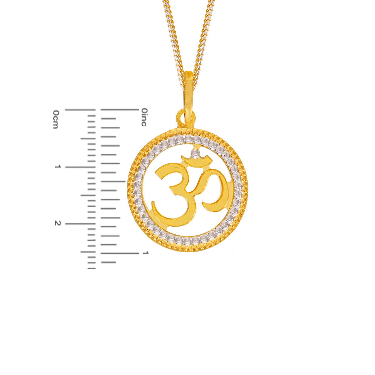 Discover the exquisite Om Two Tone Pendant by Malani Jeweler crafted in radiant 22K gold. This striking piece effortlessly combines tradition with contemporary style making it an ideal choice for fashion-forward men seeking a unique statement accessory. With a two-tone finish this pendant is designed to capture attention. The pendant is a part of our premium collection its elegant yellow color highlights the intricate design that embodies spiritual elegance. Please note that while the chain is not included the pendant itself is an exceptional standalone piece. Whether you're dressing up for a special occasion or adding a touch of sophistication to everyday wear this Om Two Tone Pendant elevates any outfit with its classic appeal. Explore this timeless pendant by Malani Jeweler today and embrace the perfect blend of art and craftsmanship. Perfect for those who seek elegance in spirituality.