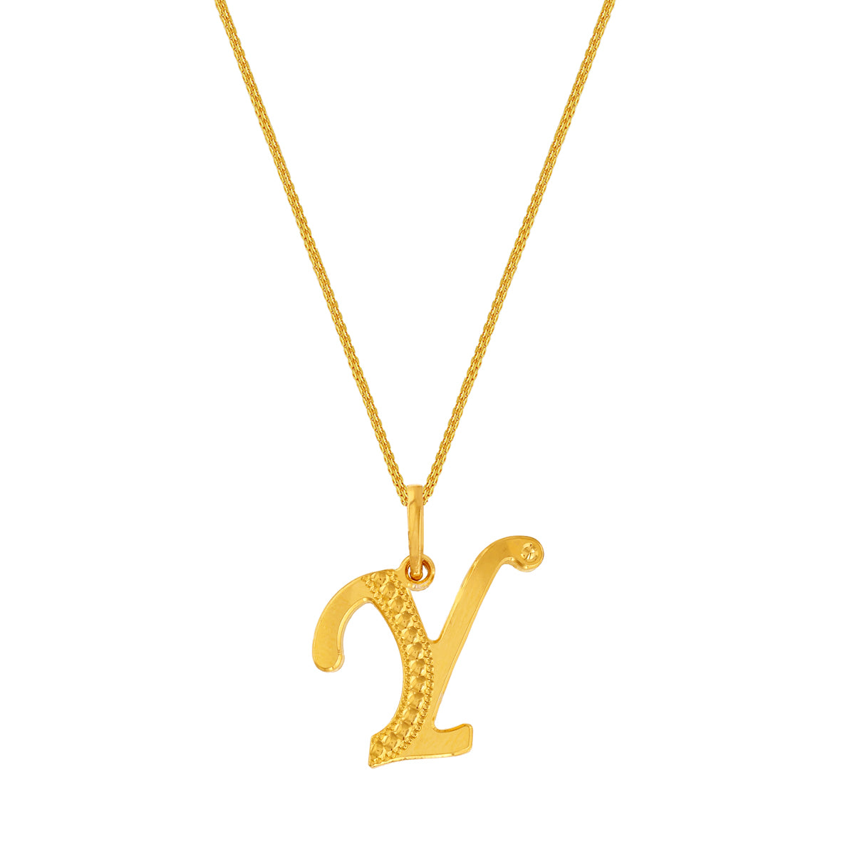 Introducing the stunning "Y" initial pendant in 22K gold from Malani Jewelers perfect for both men and women. Crafted from high-quality 22K gold this pendant boasts a gross weight of 2.5 and is finished in a striking yellow hue. Measuring 0.89 inches in length and 0.7 inches in width this pendant is both eye-catching and understated making it the perfect addition to any jewelry collection. Whether dressing up or keeping it casual this pendant is sure to complement any outfit. Please note that the chain is not included in the price. Shop now and make a statement with Malani Jewelers.