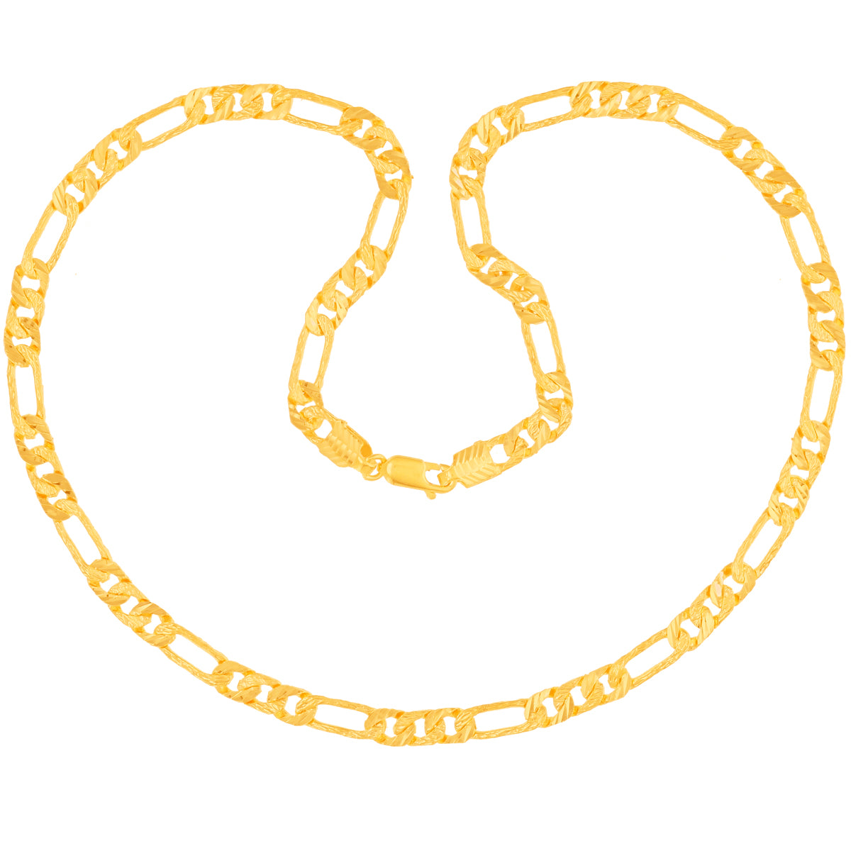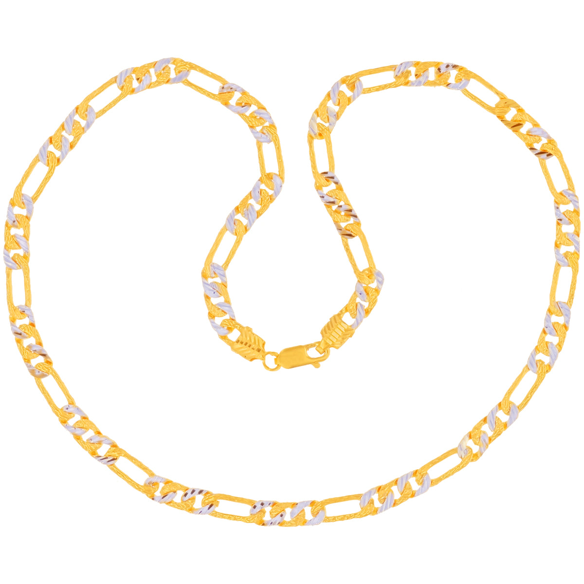 Discover the "Malani Jeweler" Link 18" Two-tone Reversible Chain crafted in 22K gold designed exclusively for men. This elegant fancy chain combines a sophisticated two-tone finish with a striking yellow color making it a standout accessory in any jewelry collection. With a precise length of 18 inches and a width of 0.2 inches this chain seamlessly complements a variety of necklines. Weighing 25.9 grams it offers a substantial feel ensuring durability and style. Ideal for those who appreciate fine craftsmanship the chain showcases intricate design patterns on the lock adding a unique touch. Elevate your style with this exquisite piece from "Malani Jeweler" a leader in men's gold jewelry. Perfect for enhancing formal or casual attire it's a timeless addition to any wardrobe.