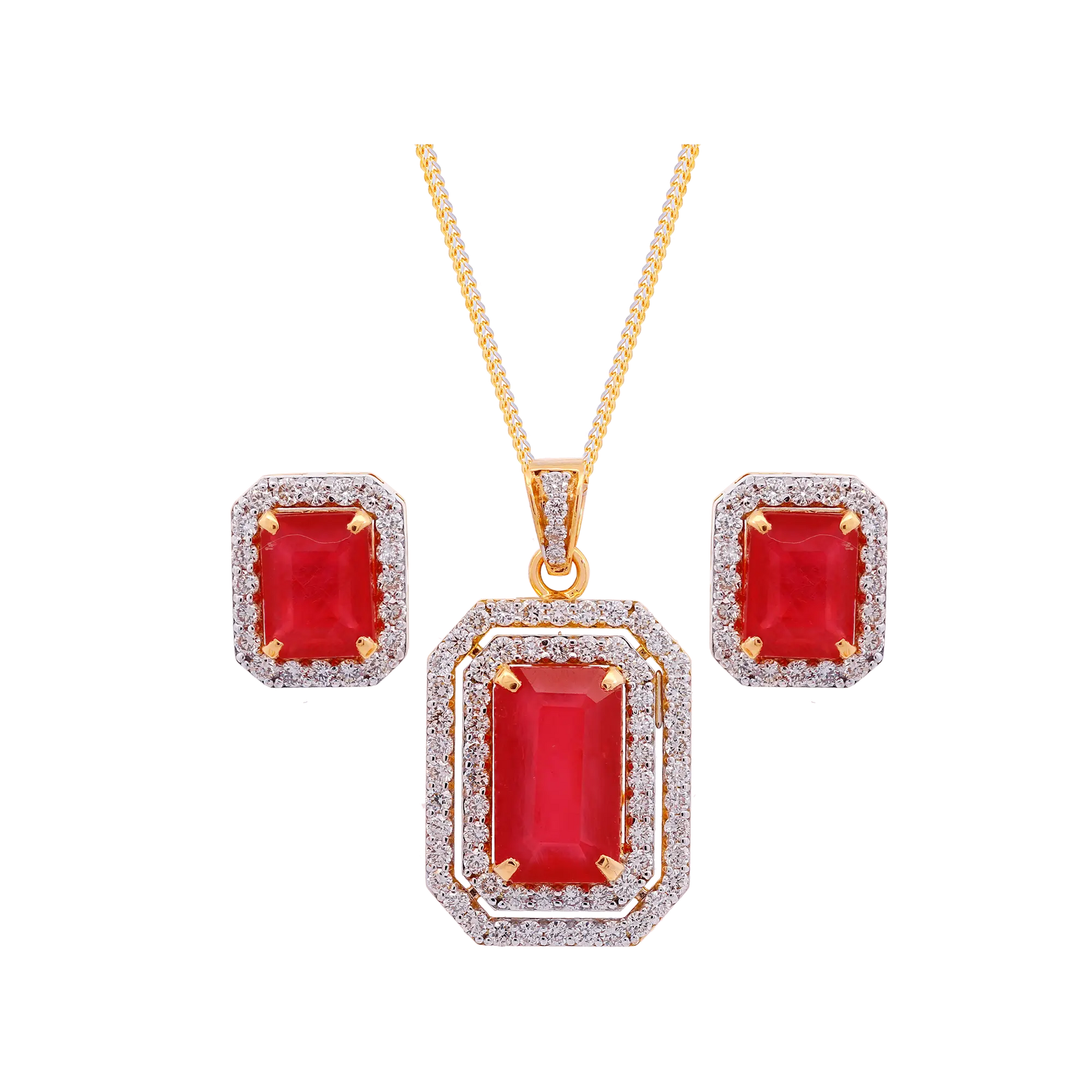 2.25Ct VS/GH Diamond Pendant Set With Ruby in 18K Gold