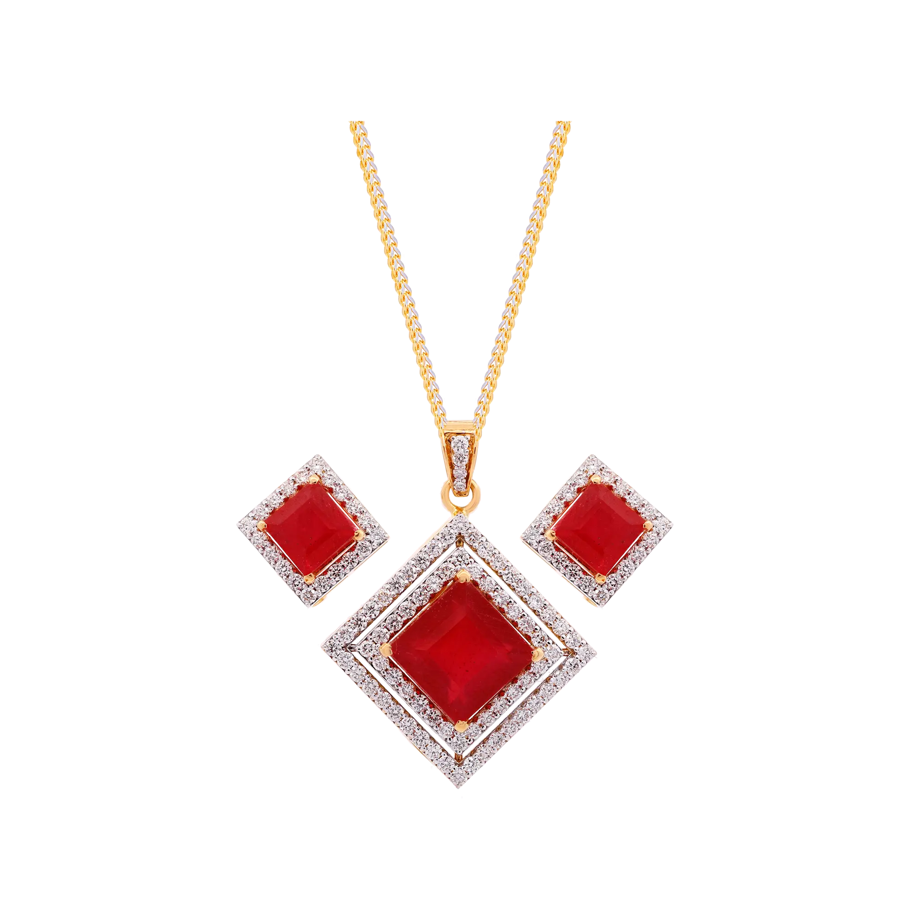 2.33Ct VS/GH Diamond Pendant Set With Ruby in 18K Gold