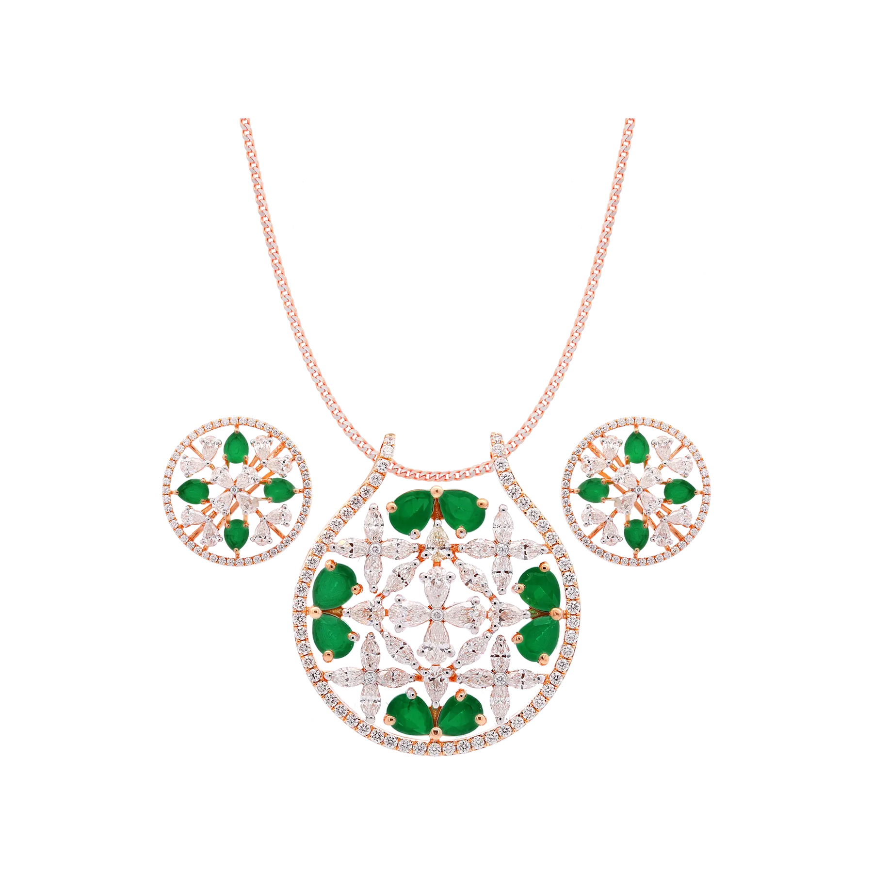 3.02Ct VVSFG Diamond Pendant Set With Gemstones in 18K Rose Gold