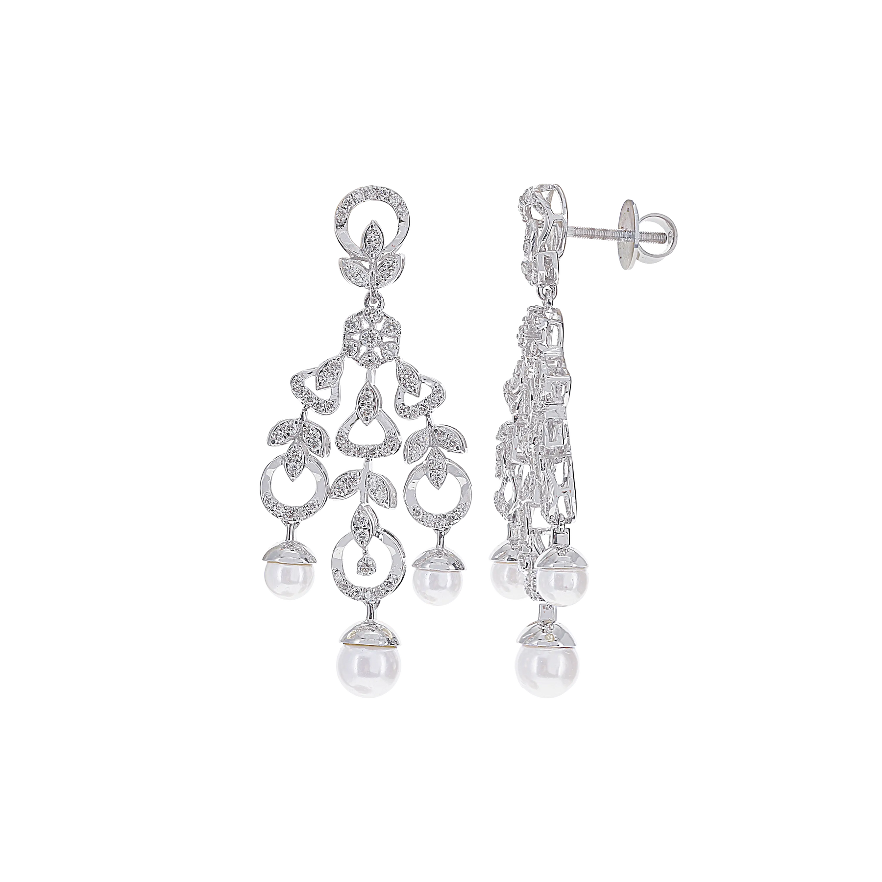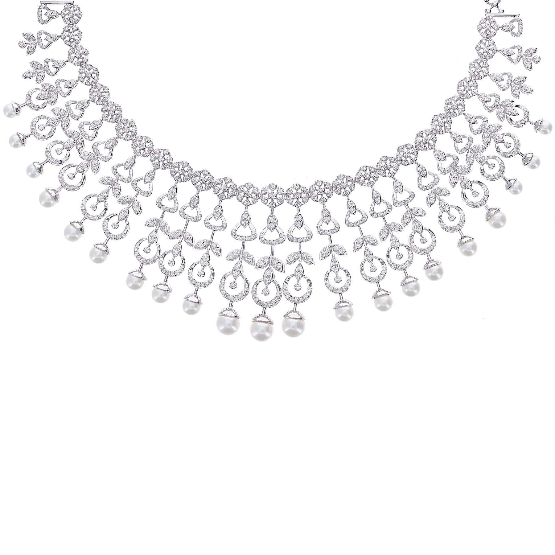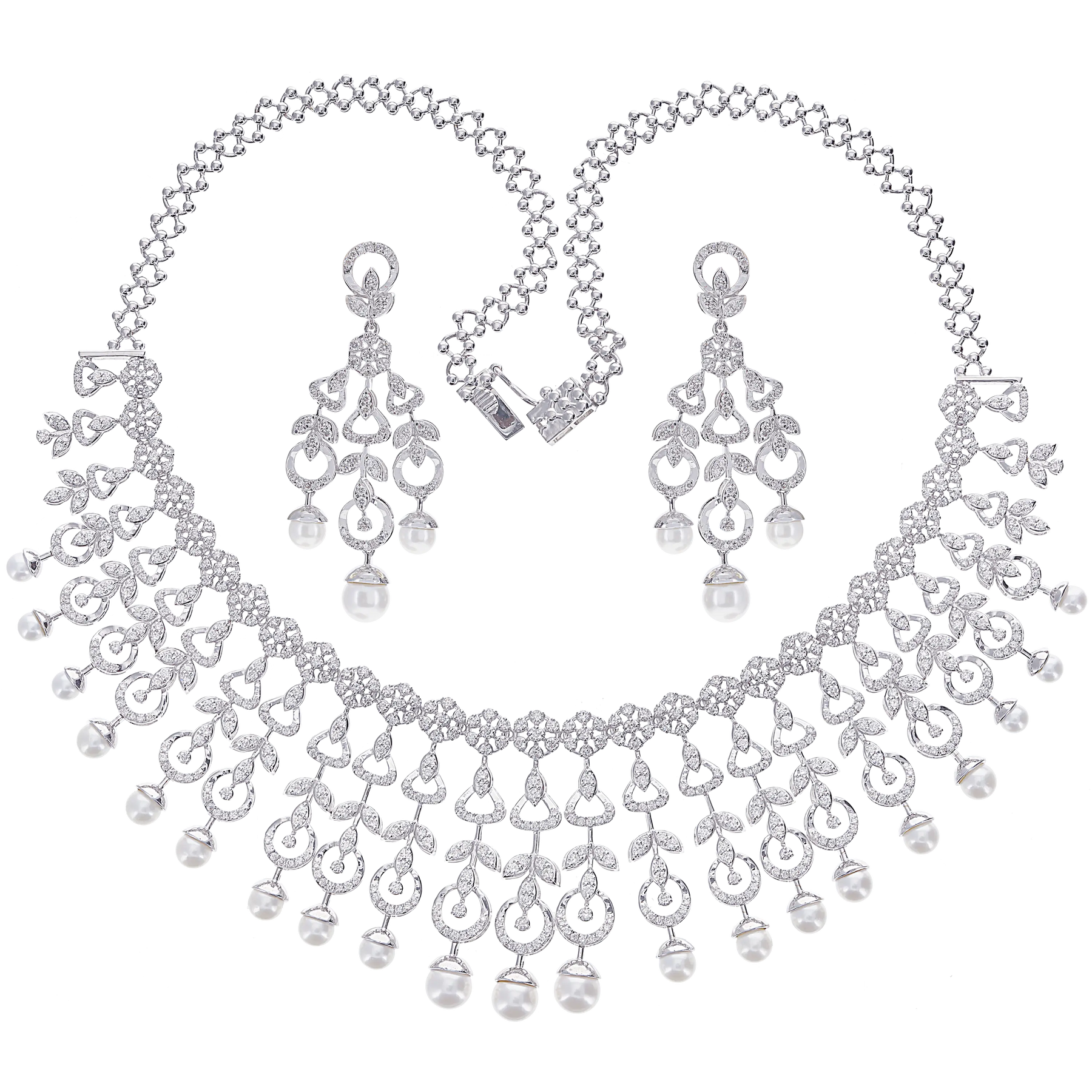 8.76Ct VVS/FG Diamond Necklace Set With Pearl in 18K White Gold