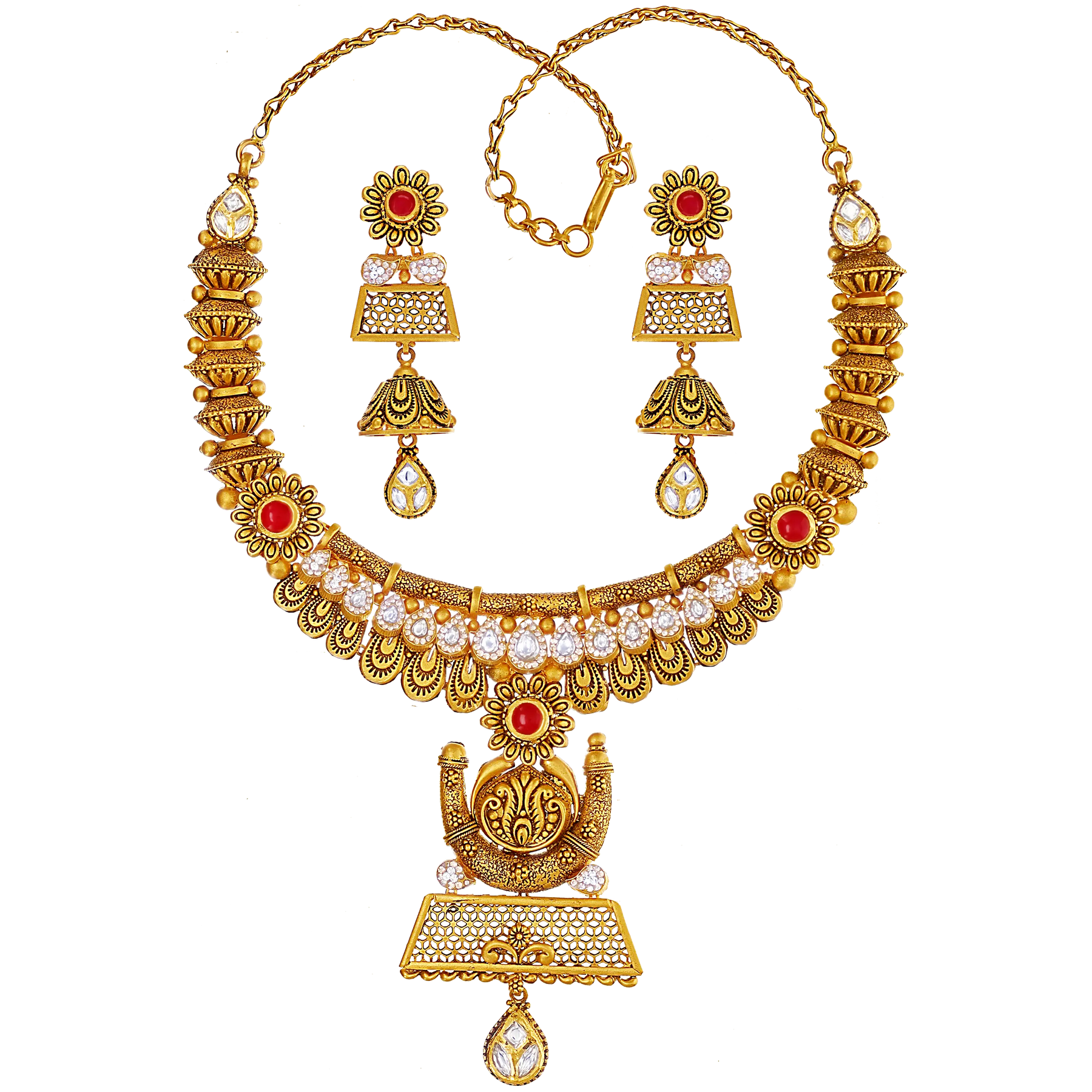 Magnificent Antique Necklace Set with Kundan & Gemstones in 22K Gold