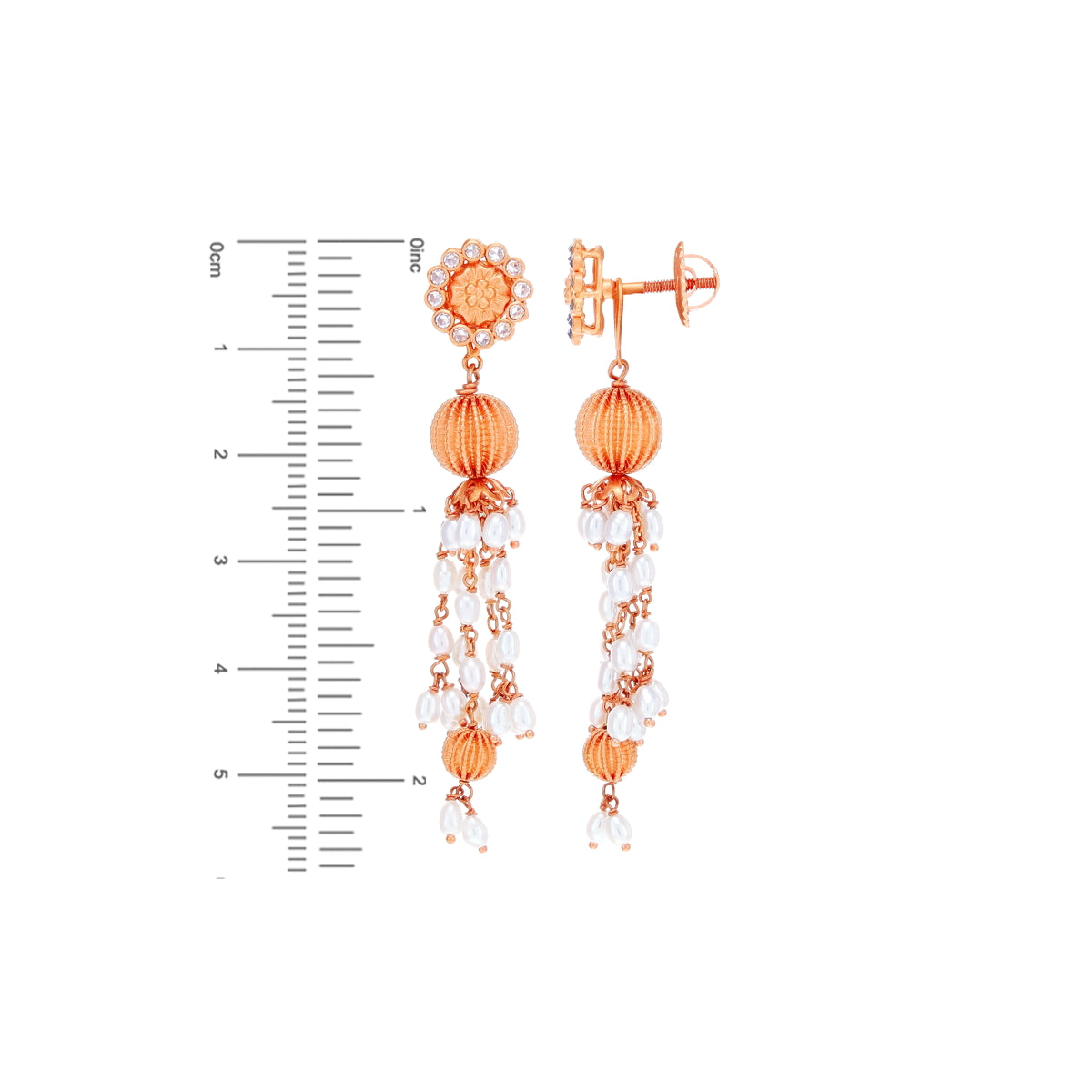 Antique Necklace Set With White Polki & Pearl in 22K Rose Gold