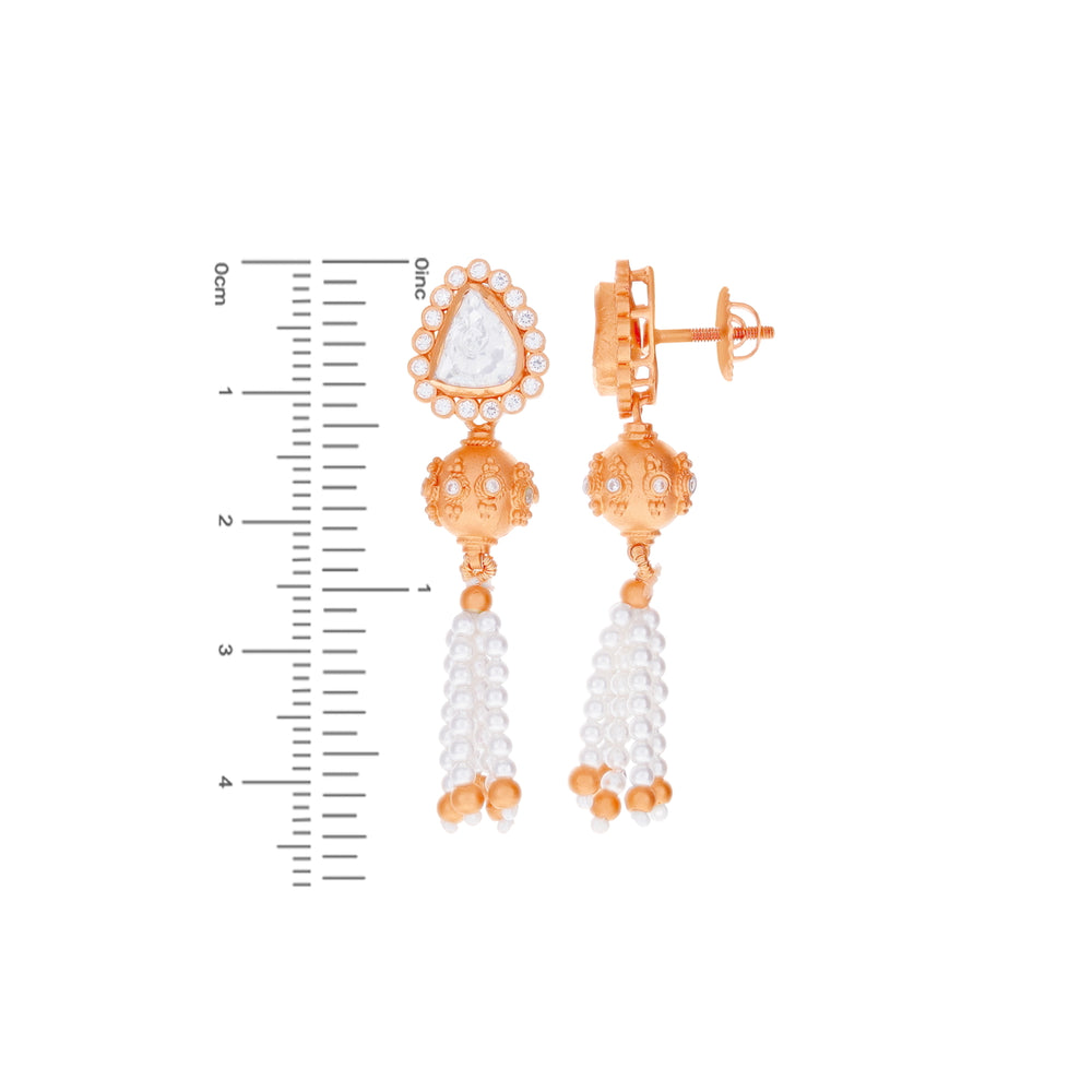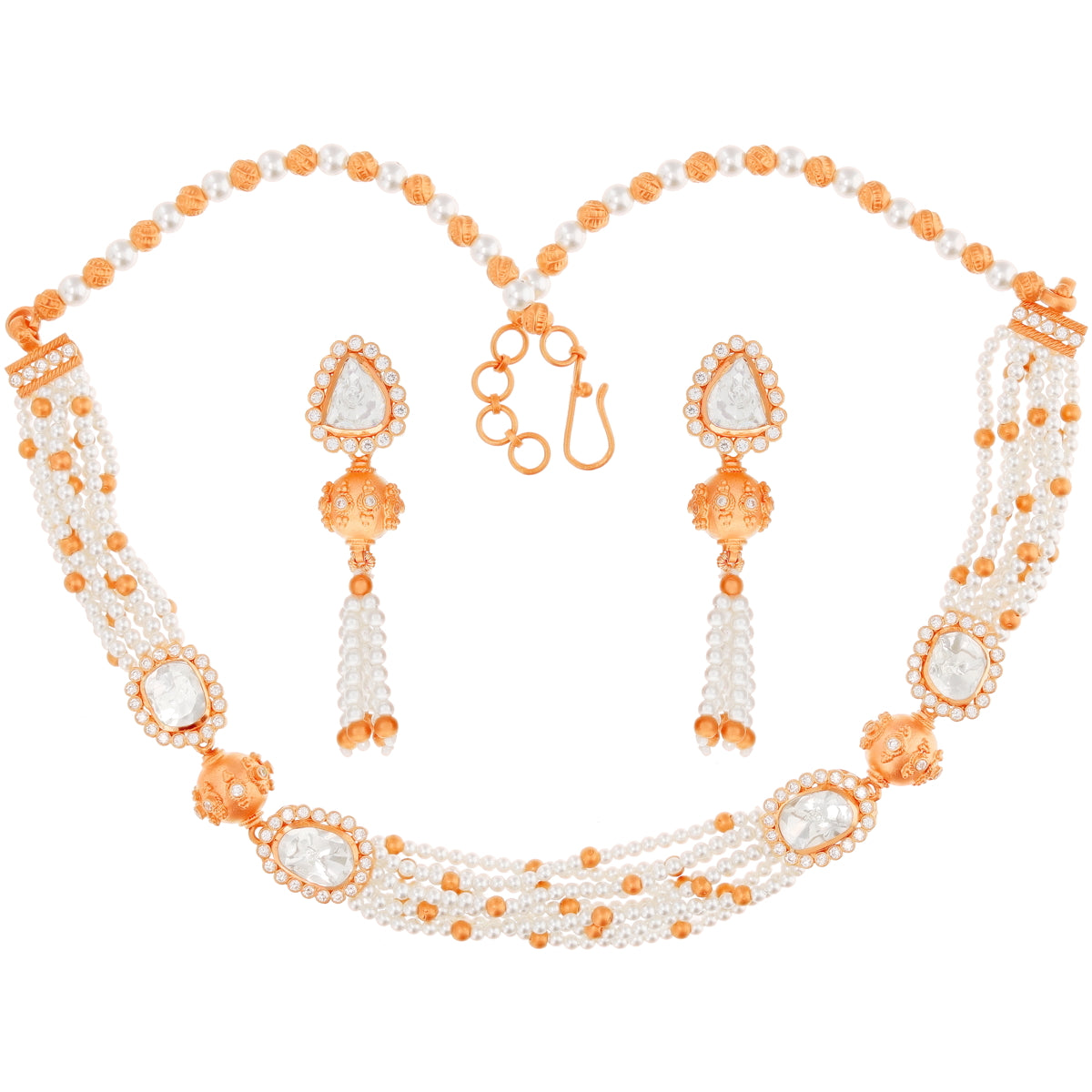 Detailed Antique Necklace Set with White Polki & Pearl in 22K Rose Gold