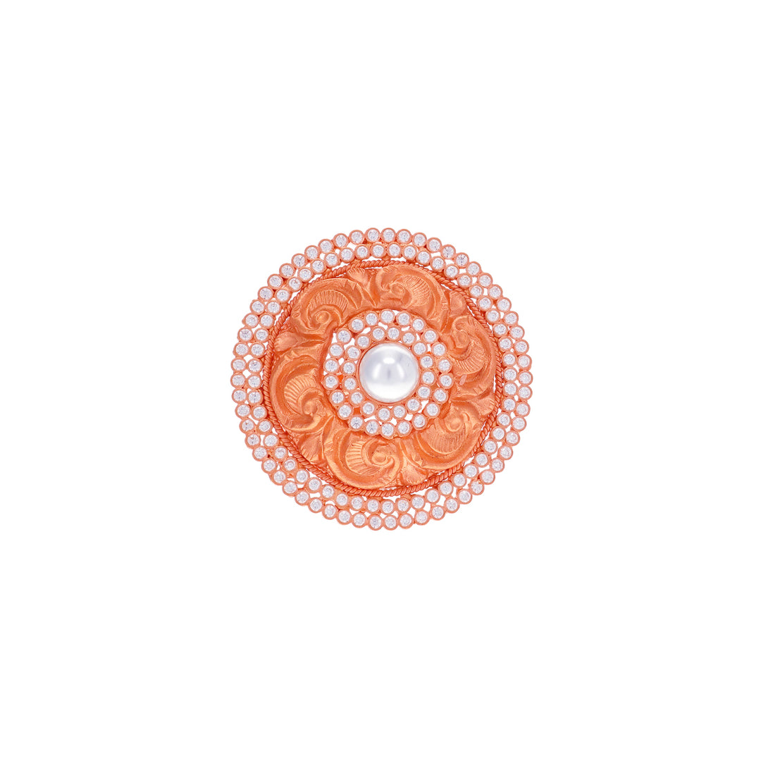Exquisite Antique Adjustable Ring With White Polki & Pearl in 22K Rose Gold