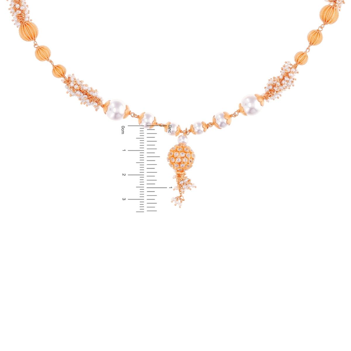 Ornate Antique Necklace Set with White Polki & Pearl in 22K Rose Gold