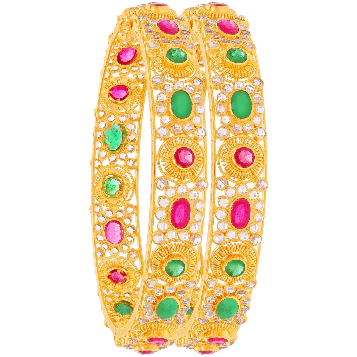 Artisan Antique 2pcs Bangles With Polki Ruby & Emerald in 22K Gold