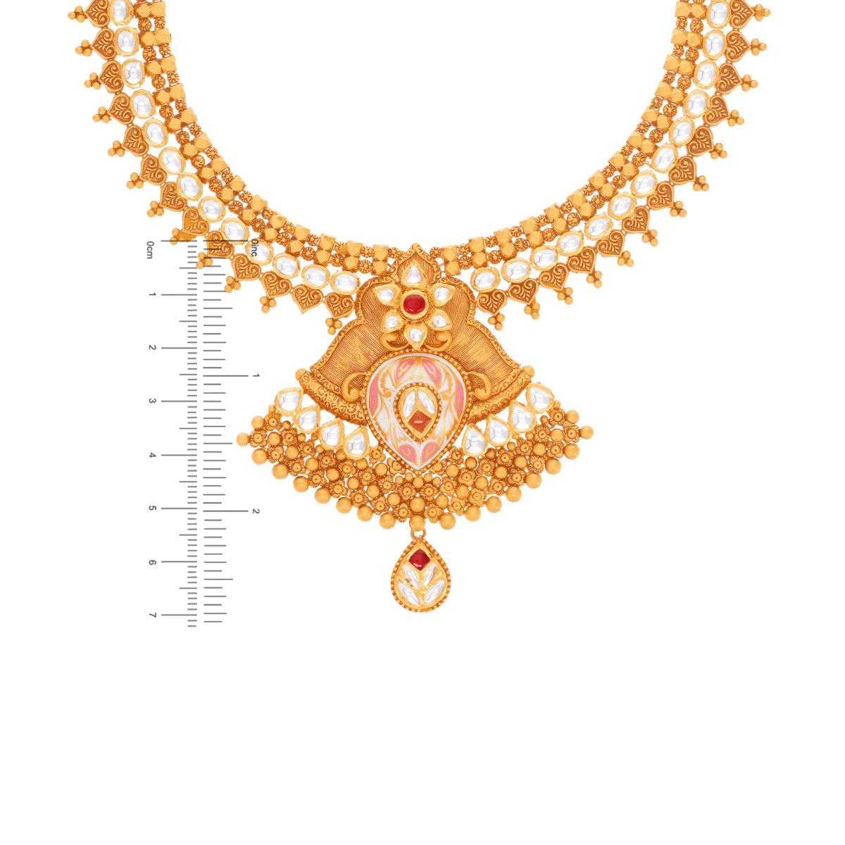 Classic Antique Minakari Necklace Set With Kundan & Gemstons in 22K Gold