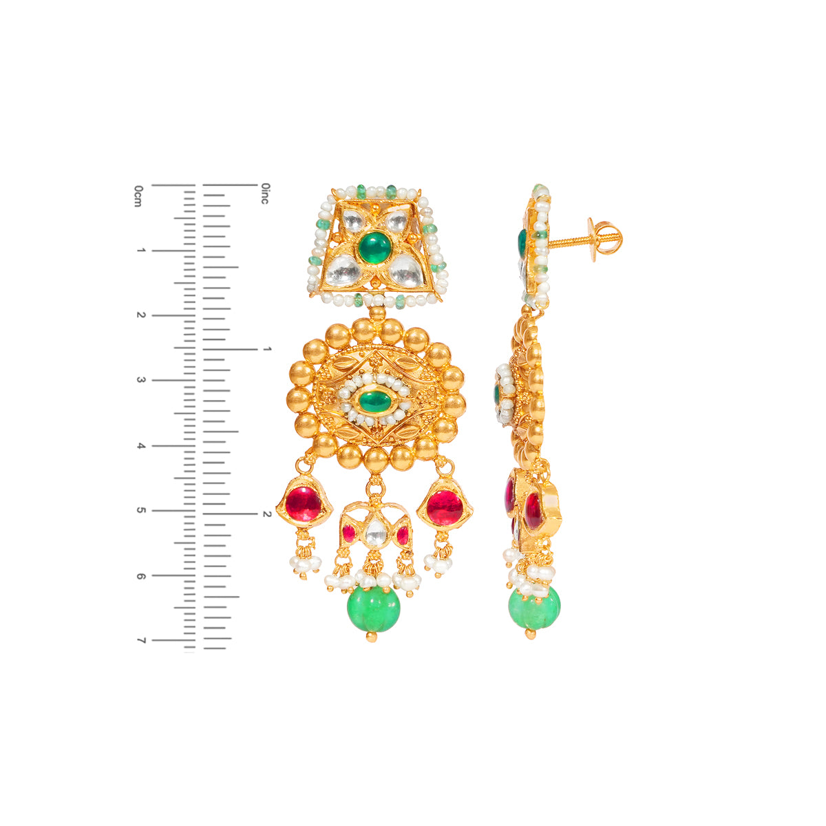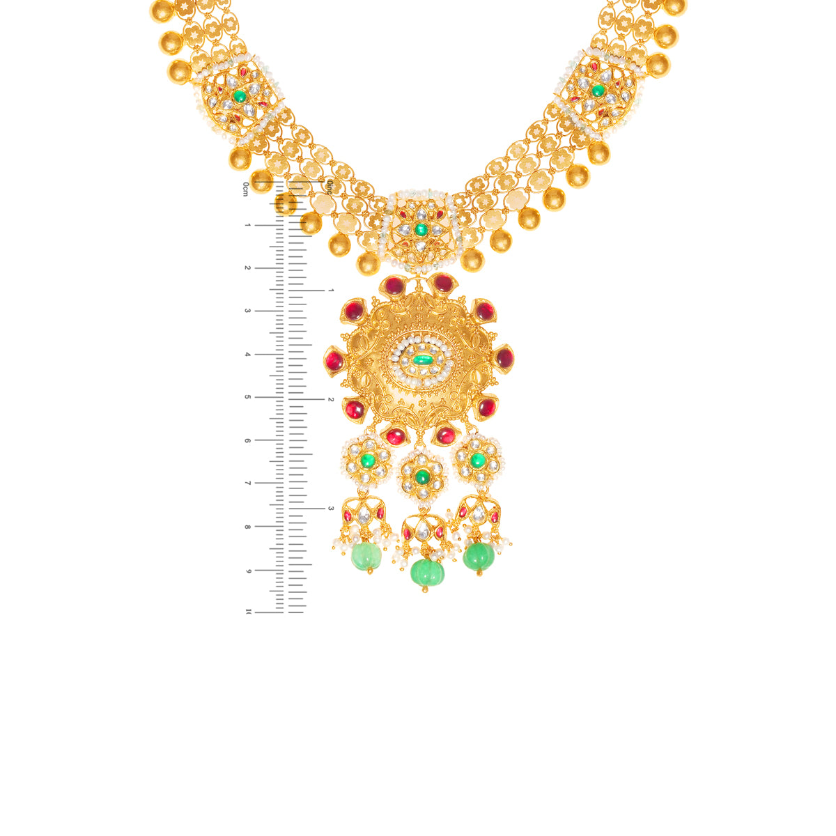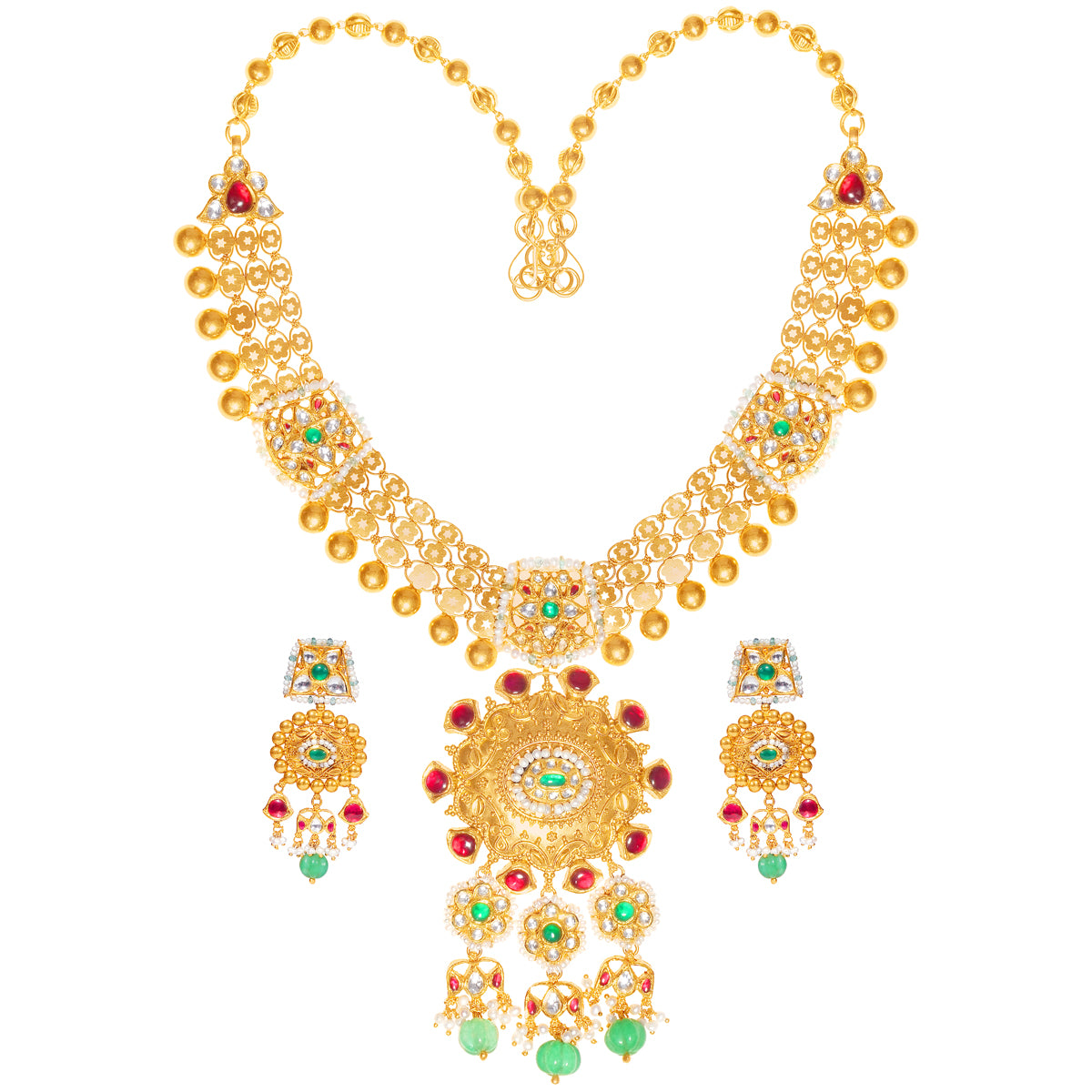 Enchanting Antique Necklace Set With Kundan & Gemstones in 22K Gold