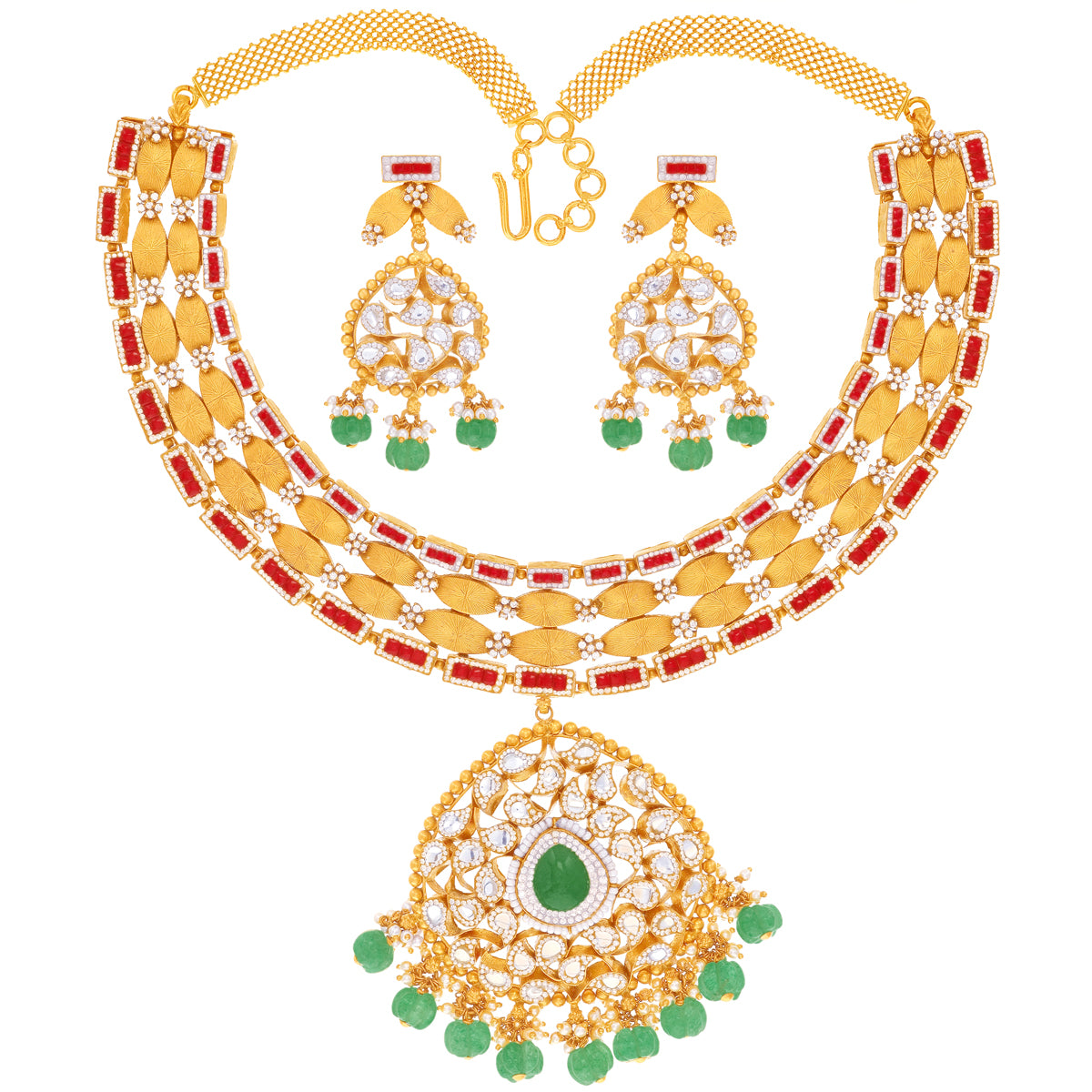 Gorgeous Antique Necklace Set With Kundan & Gemstones in 22K Gold