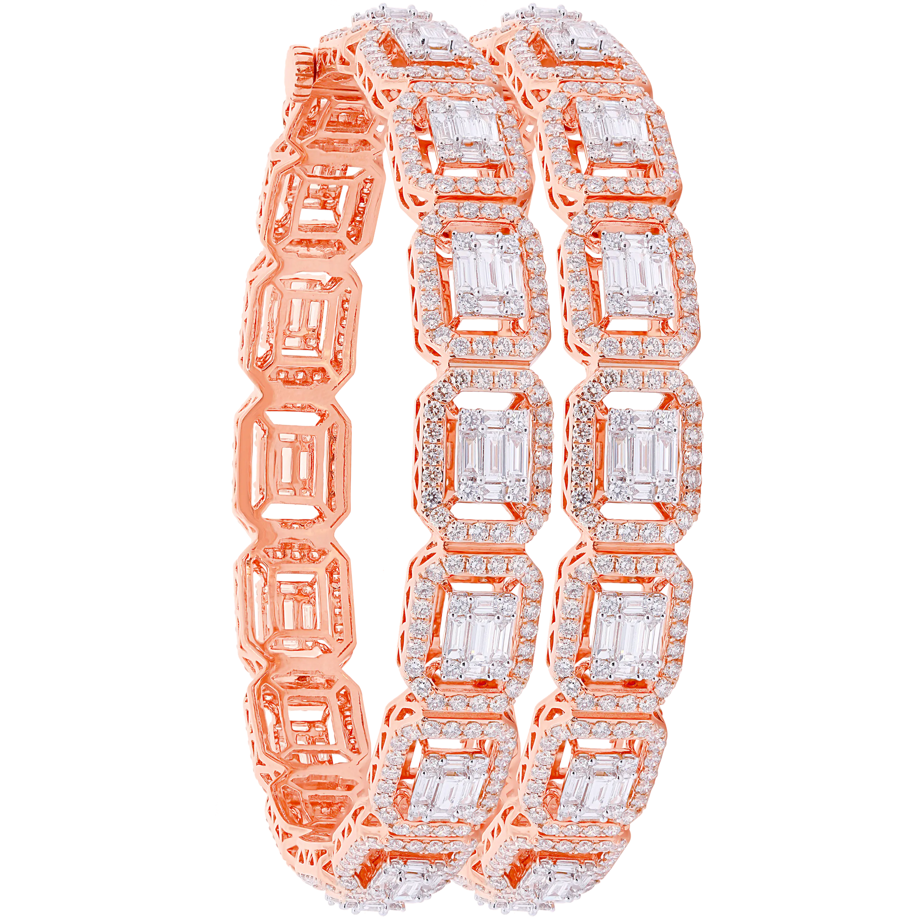 15.86Ct VVS/FG Diamond Set of 2pcs Bangle in 18K Rose Gold