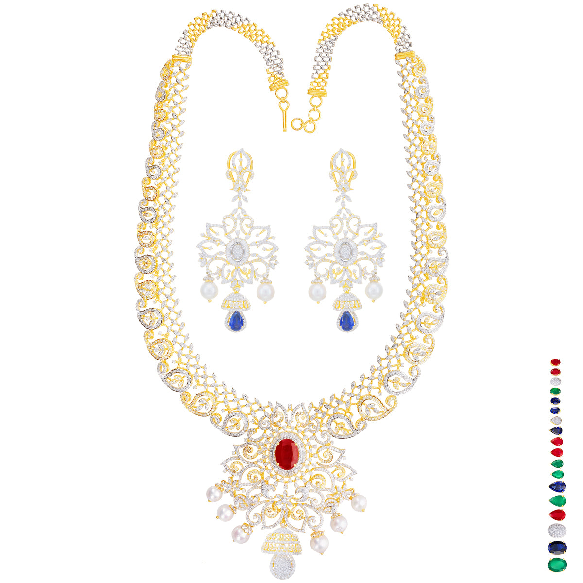 21.15Ct VVS/EF Diamond Patta Haarm With Changeable Gemstones in 18K Gold