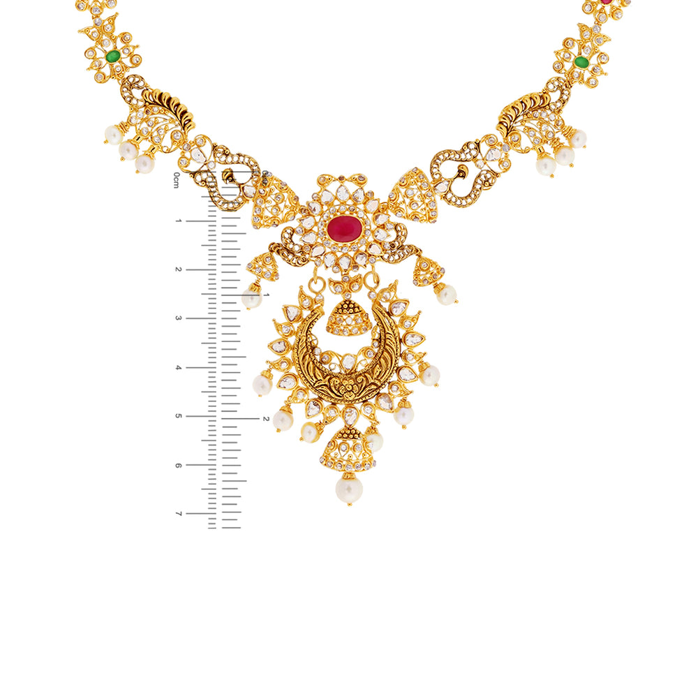 14.65CTW Rose Cut Diamond Necklace Set with Gemstones in 22K Gold