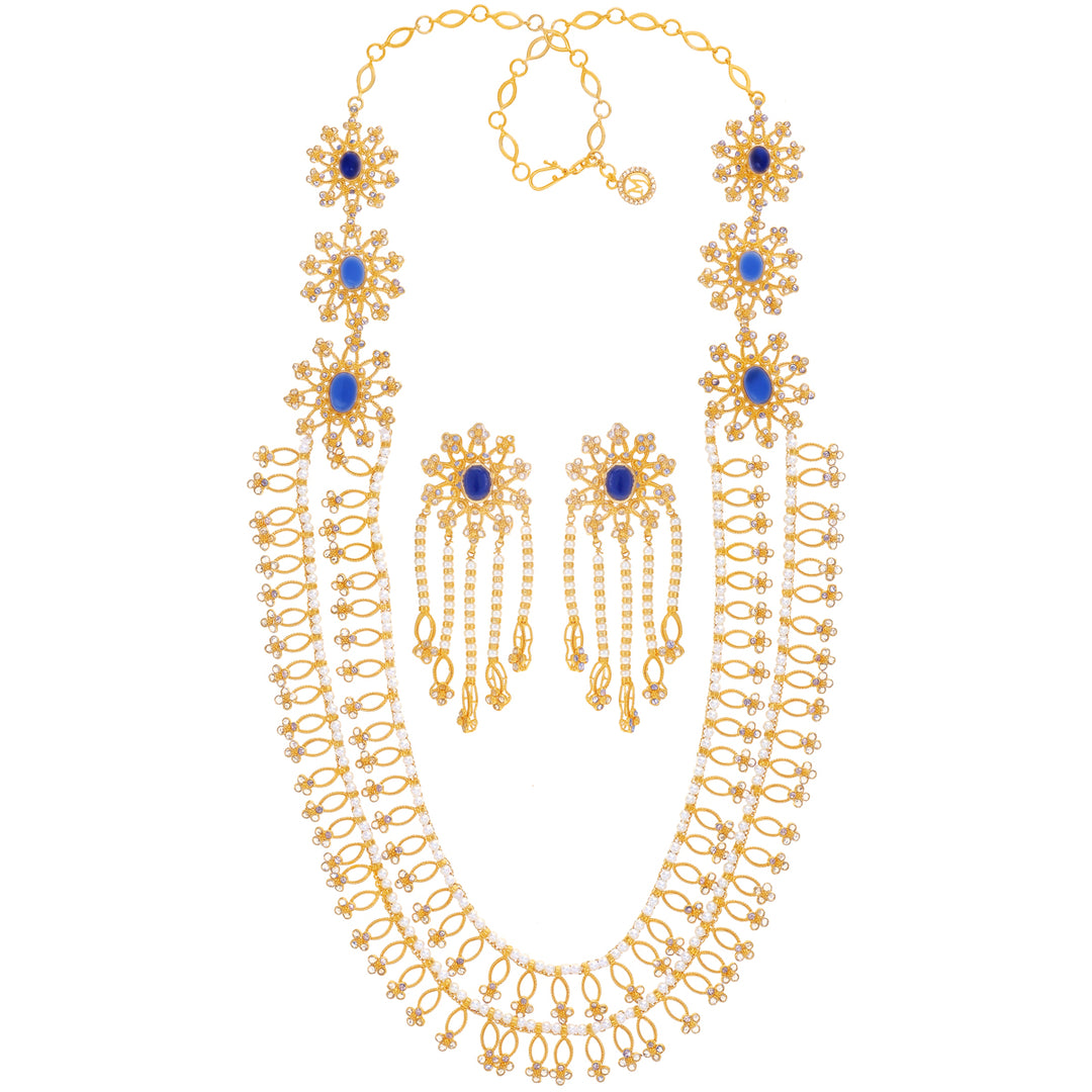 11.65Ct Rose Cut Diamond Necklace Set With Sapphire in 22K Gold